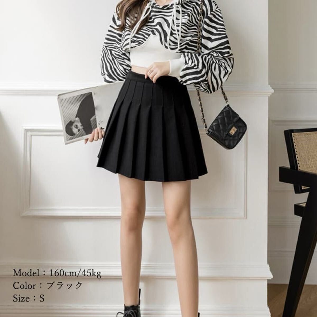 生地は見ためウール調で、裏地は柔らかくてさらりとした素材で着心地も快適のミニプリーツスカート