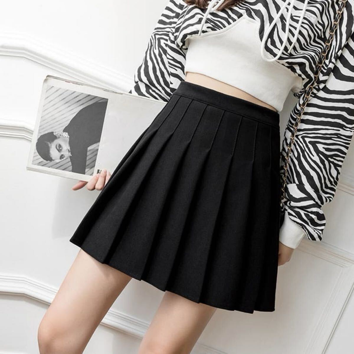 インナーパンツ付き 秋冬ラインスカート レディースショートお洒落 ボトムス ブラック