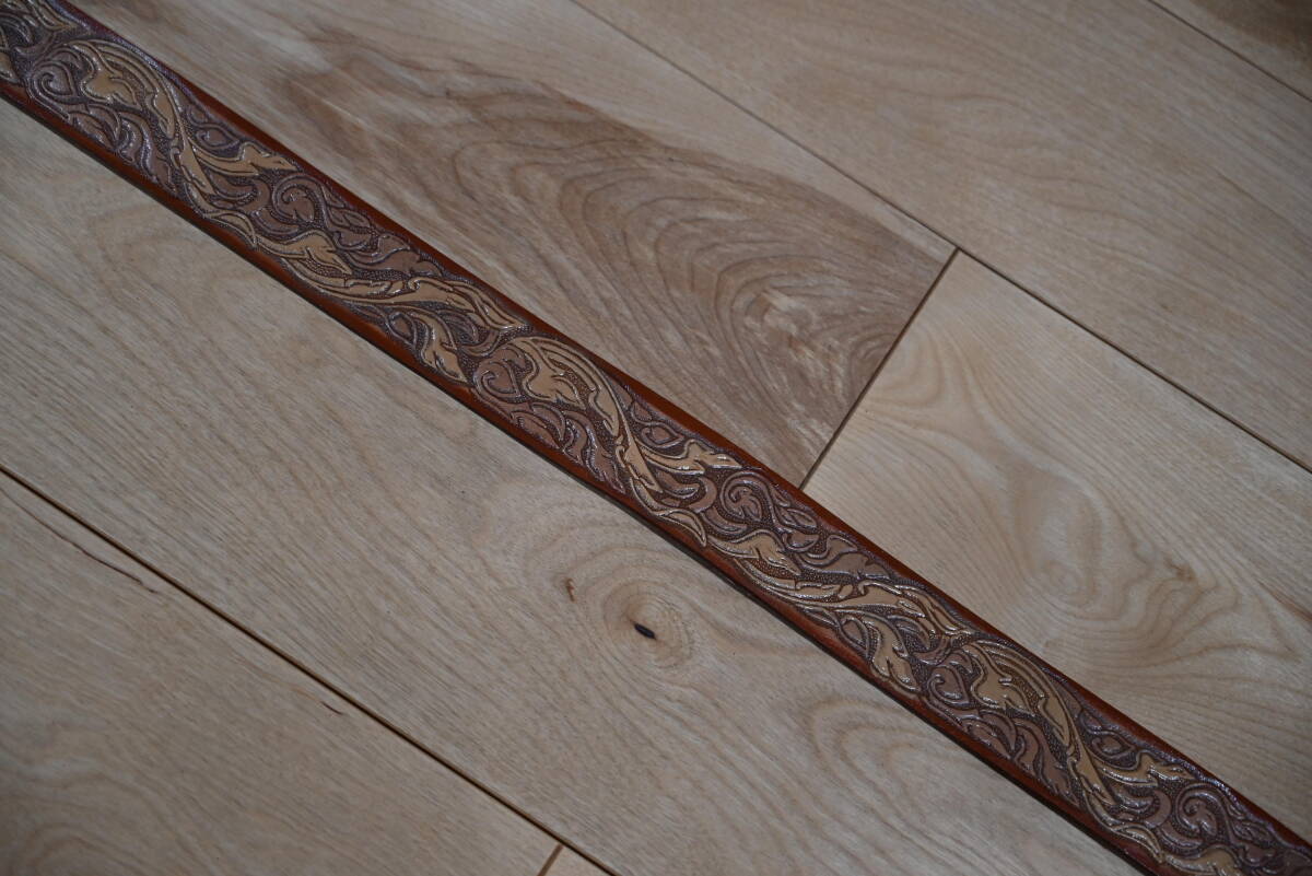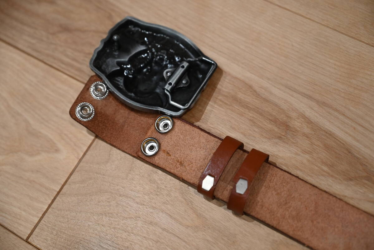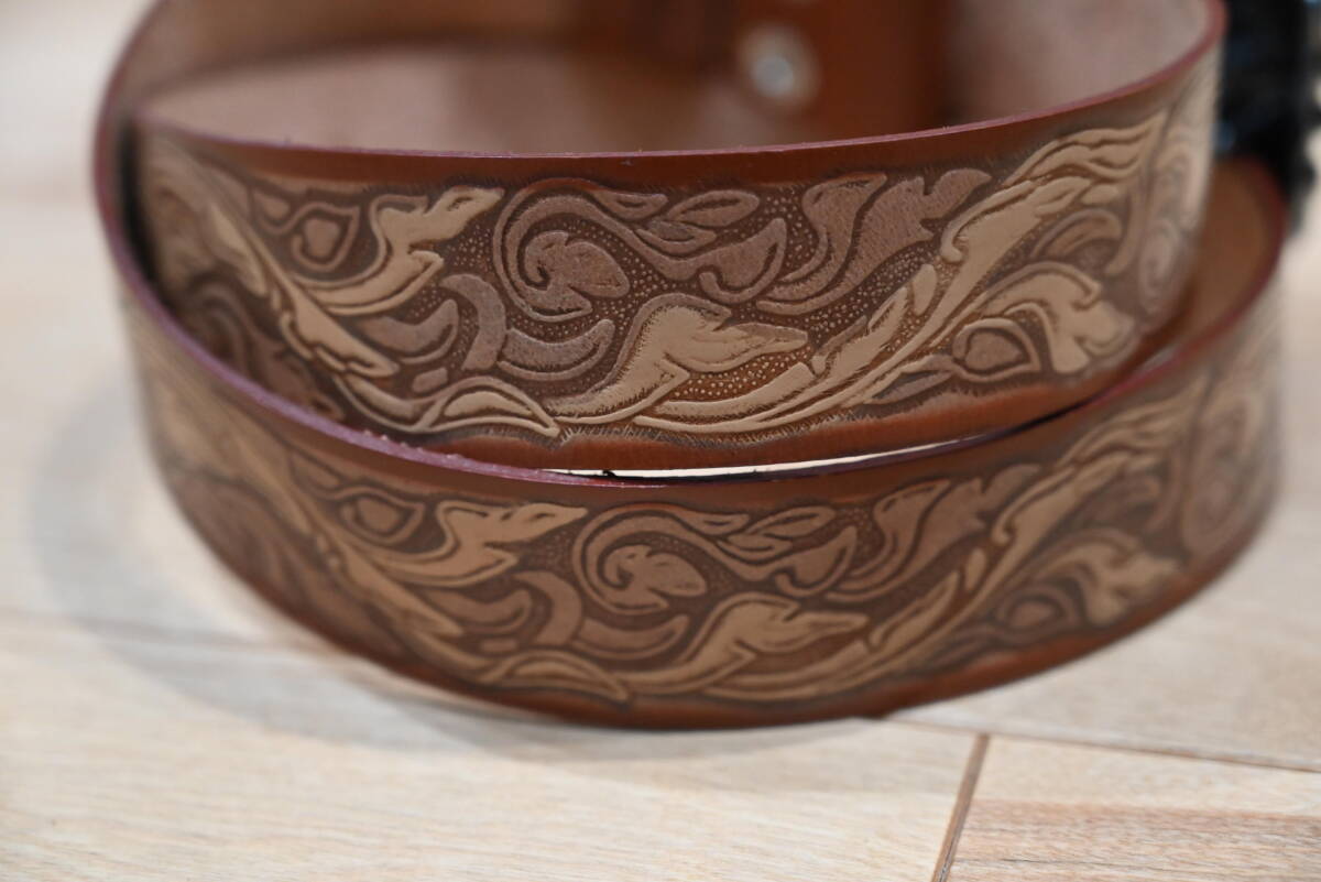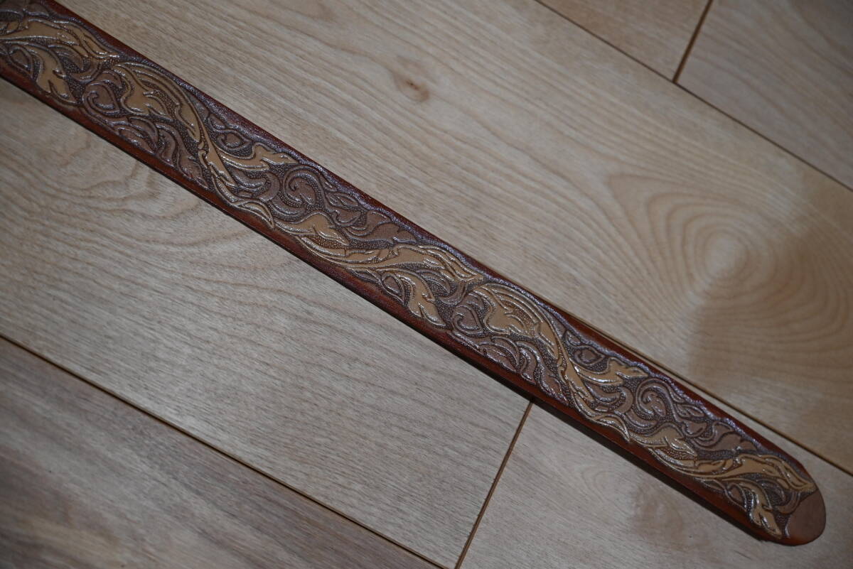 | 商品説明 | 牛革で作成した、カービング柄 バックル付き炎舞柄ベルトです。 色は茶で、未使用品になります。 サイズは、ベルト本体は108㎝、幅は3.7㎝、バックルは約縦7㎝×横8㎝程になります。 全体に葉茎を炎舞柄の様にデザインしています。色も濃淡を付けて仕上げています。ベルトの厚さは約3㎜程になります。 バックルの部分は、ボタンタイプなので、交換も可能になっています。バッファローで「BAD TO THE BONE」のロゴが入っていますので、インパクトが出ています。 ベルトの穴あけは、購入者の方にお願いします。フリーサイズで可能になるよう当方では加工無しの状態で出品致します。 発送は、定形外郵便を利用します。送料は、450円になります。 こちらは、ハンドメイドなので、多少の傷や汚れ等はご了承下さい。細かい点まで、気になる方はご遠慮下さい。 |