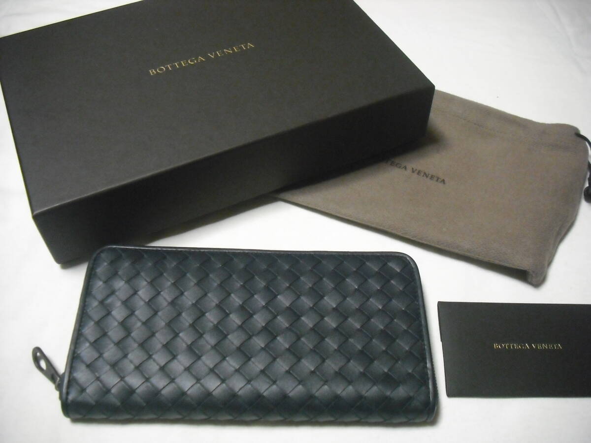 【新品・未使用】ボッテガヴェネタ★イントレチャート★ラウンドファスナー長財布★ダークネイビー