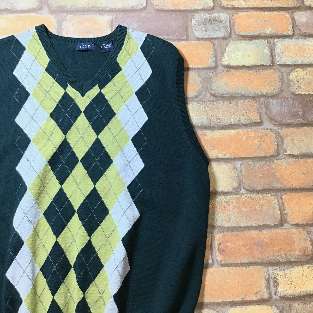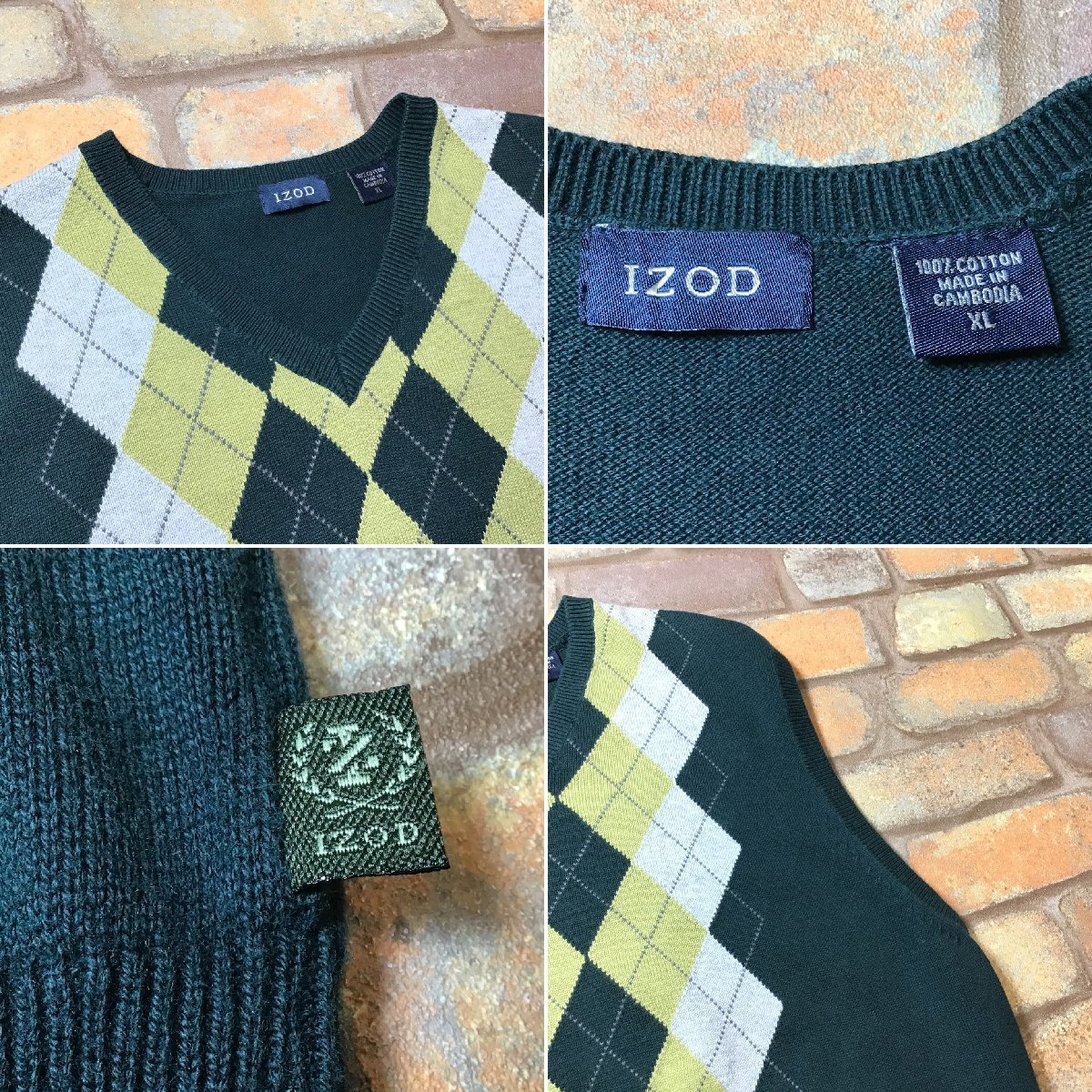 合計落札金額¥8,000円以上で、、、 送料無料!! ※こちらからの[合計支払い金額通知]をご確認の上、お支払い下さい♪ -------------------------------------------------------- 【 IZOD アイゾッド 】 アーガイルチェック Vネック ニットベスト ● USA輸入・正規品 ● ● 海外サイズ規格 ● -------------------------------------------------------- ヨゴレ、破れ等はなく、コンディション良好です◎ ソフトな肌触り、長いシーズン使えるコットンニット♪ ゆったりシルエット、人気のアーガイルチェックのお薦めアイテムです★ ------------------------------------------------------ ◆ サイズ ◆ メンズ XL ※下記実寸のご確認をお願いいたします。 ◆ 実寸◆ 肩幅:46m 身幅:56cm(両脇下間を計測) 着丈:71m(背面襟元~裾を計測) 袖丈:--cm 素人採寸の為、多少の誤差はお許しください。 -------------------------------------------------------- ◆ 素材表記 ◆ コットン 100% -------------------------------------------------------- | |||