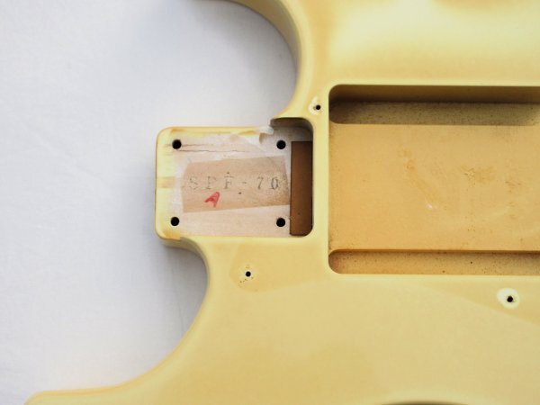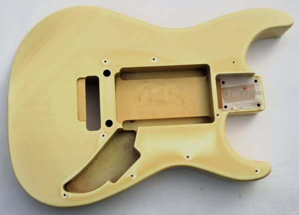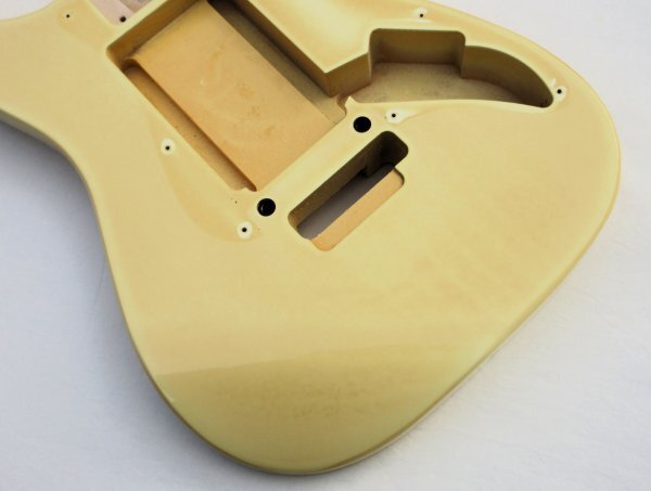 1980年代中盤のフジゲンのホワイトはかなり黄ばみやすく、この個体もかなり黄ばんでいます。