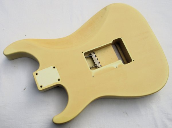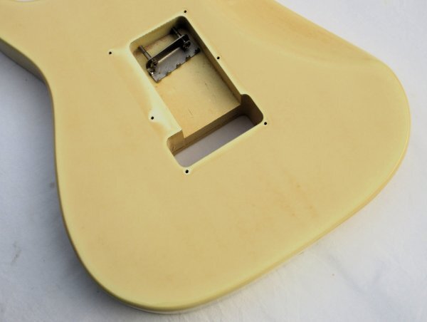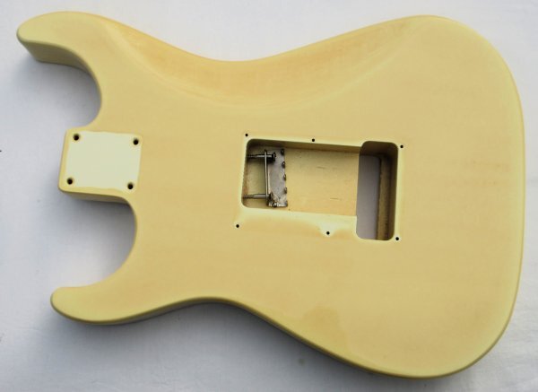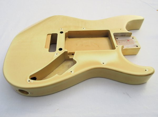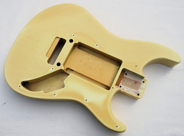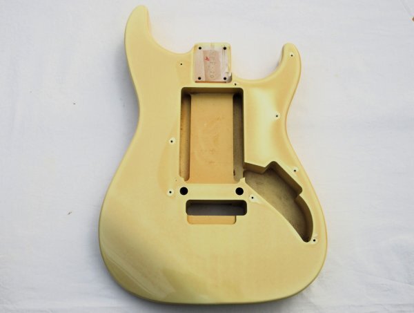 話がそれましたが、ギターボディの説明に戻りますがスクエアエッジなボディシェイプが特徴のピックガード対応ストラト型ボディです。