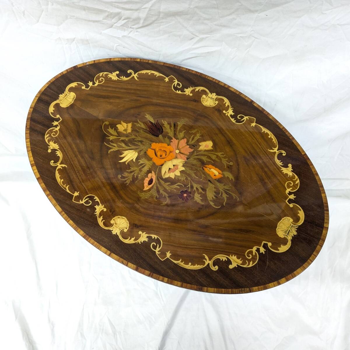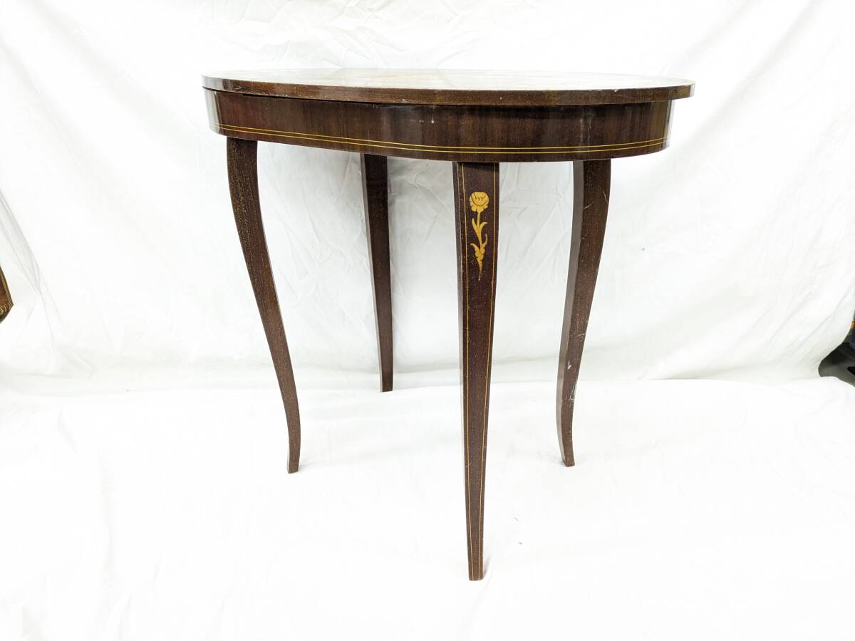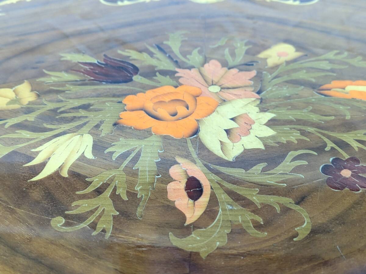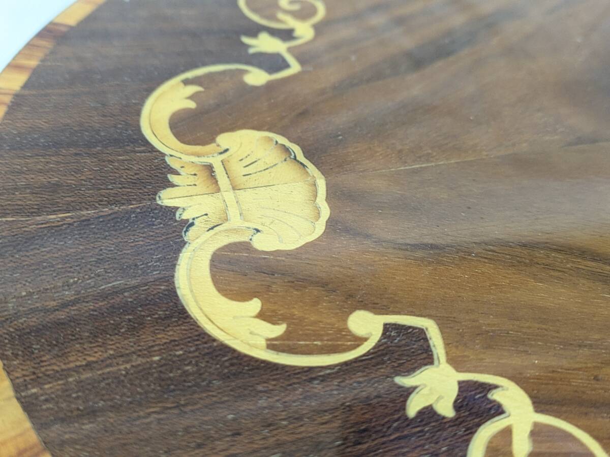 | O01)現状 イタリア アンティーク ローテーブル 象嵌 ヴィンテージ HAND INLAID MADE IN ITALY ハンドメイド 工芸 | ||