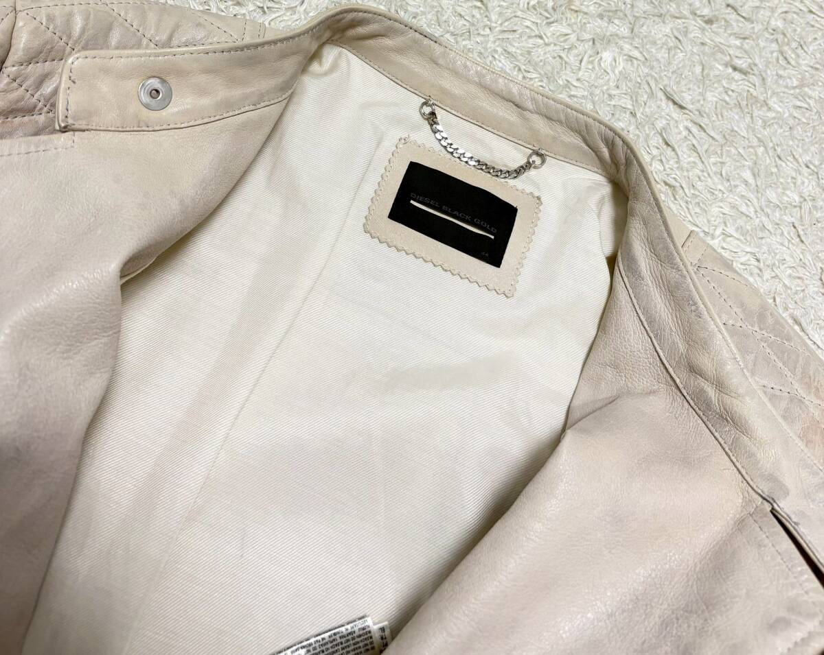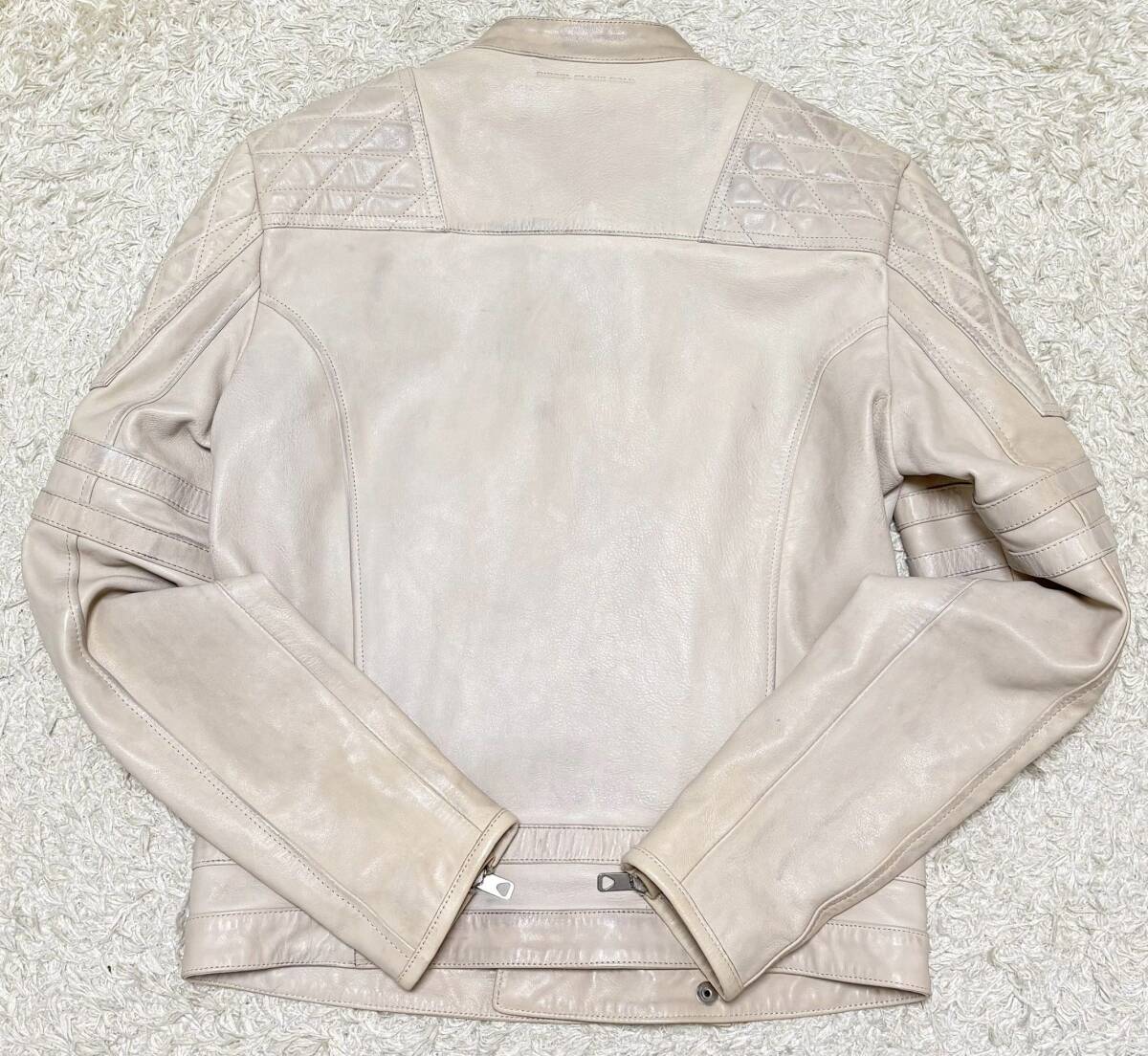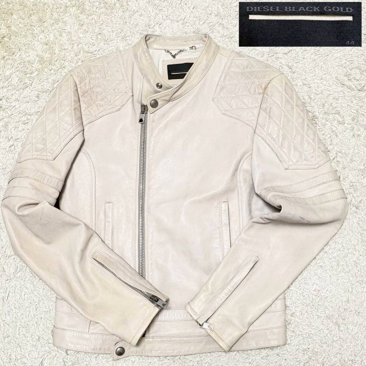 【羊革★イタリア製】sz:44 DIESEL ダメージ加工 ラムレザー ダブルライダースジャケット ベージュ系●ディーゼルブラックゴールド (10ハ)