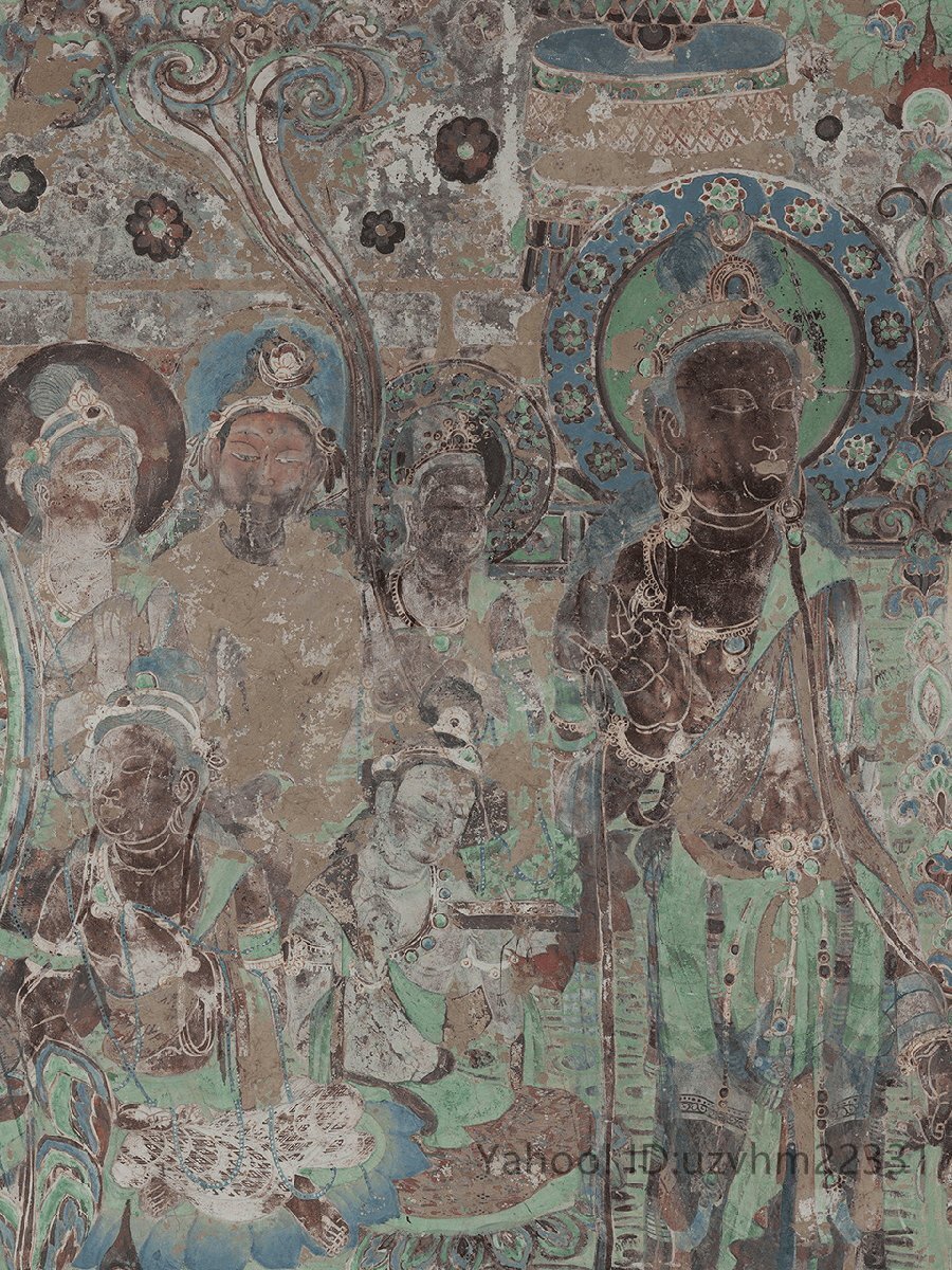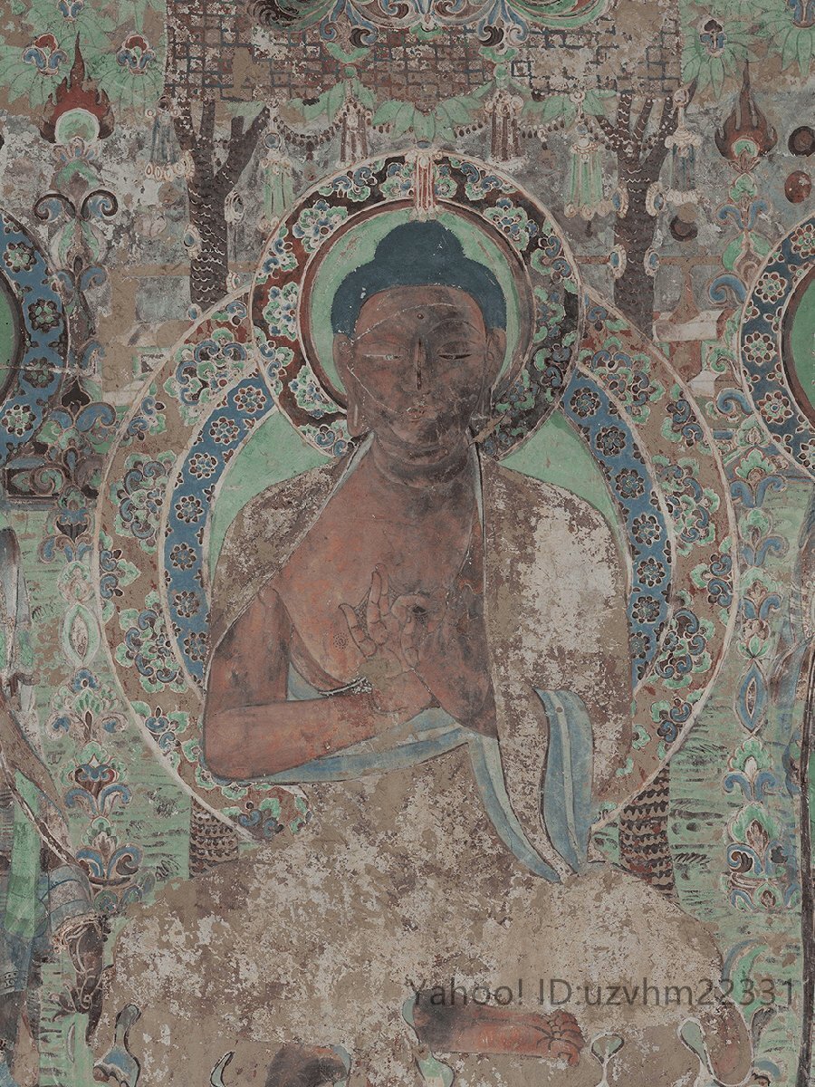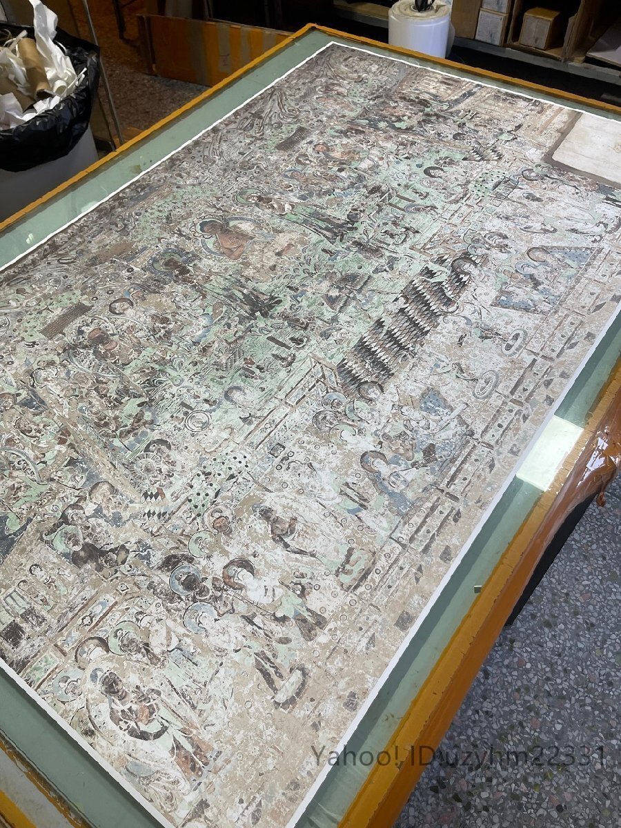 敦煌壁画 莫高窟 壁画 文西方極楽世界図 西方三聖 阿弥陀仏 観音図 仏画 仏教美術 絹本 掛け物 未表装