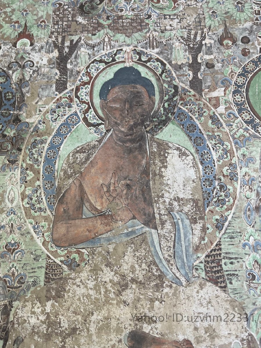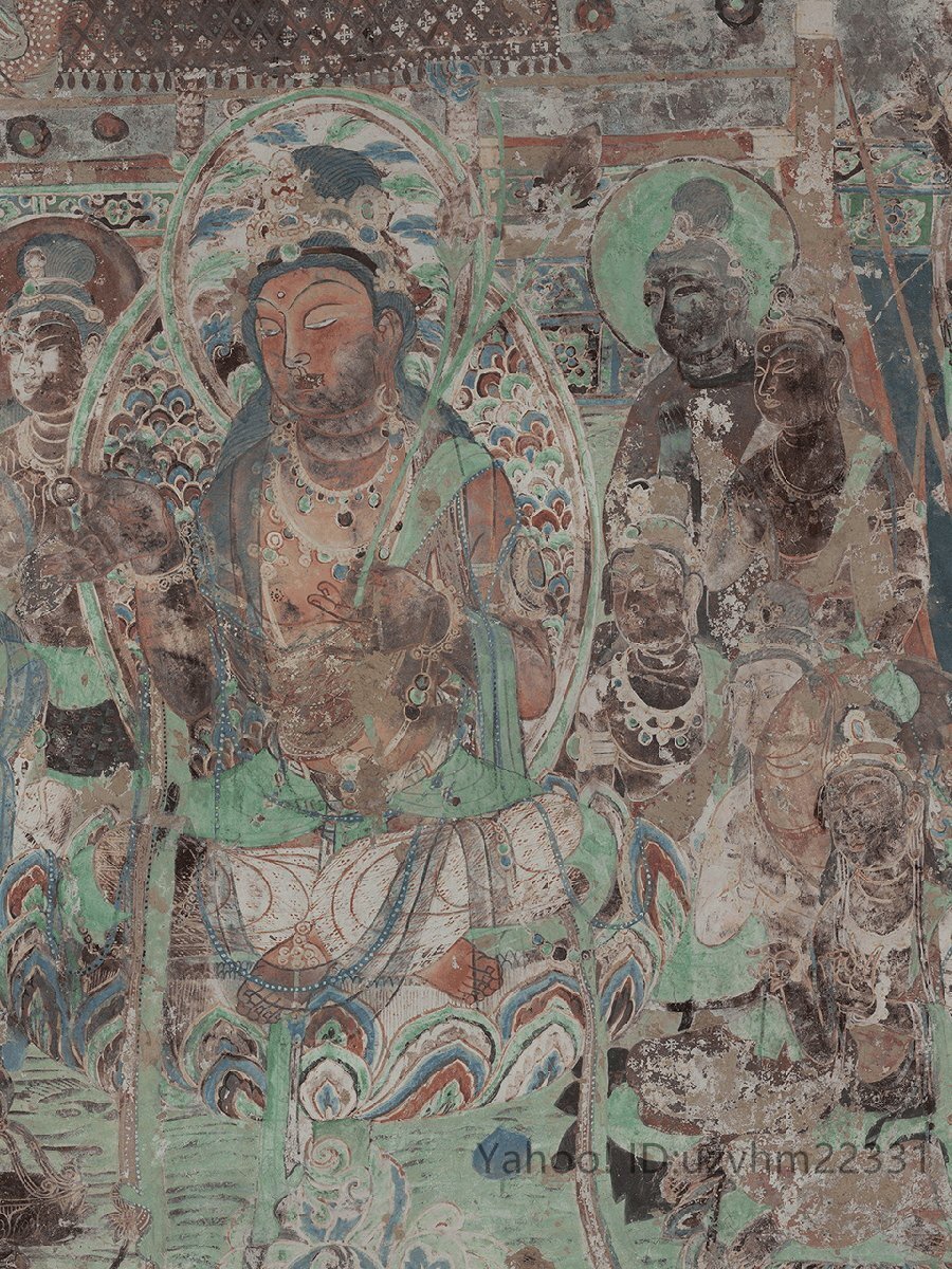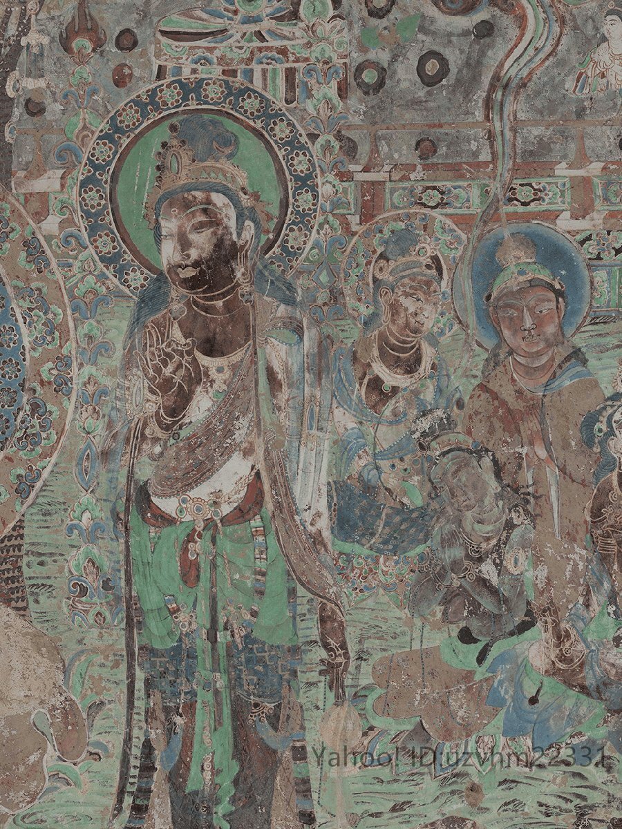 敦煌壁画 莫高窟 壁画 文西方極楽世界図 西方三聖 阿弥陀仏 観音図 仏画 仏教美術 絹本 掛け物 未表装