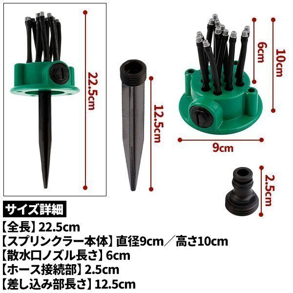 スプリンクラー本体:直径9cm 高さ10cm/散水口ノズル長さ:6cm