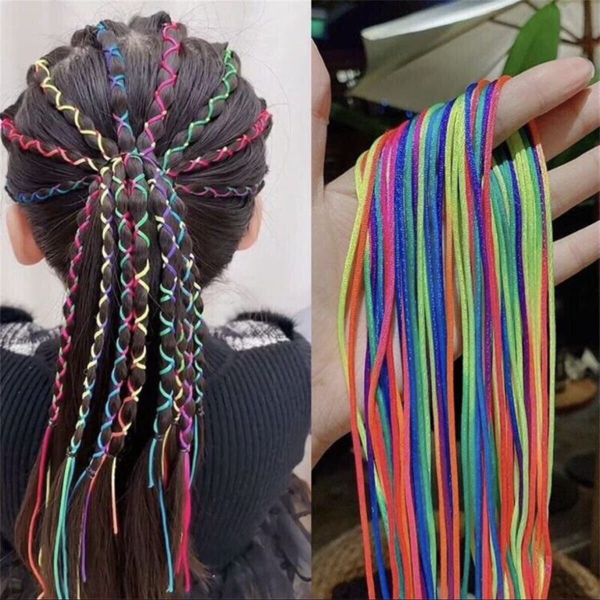 紐 カラフル 編み込み ヘアアクセサリー ヘアアレンジ 推し活 イベント 派手 ギャル 目立つ グラデーション 文化祭 体育祭 子供 キッズ ダンス 発表会 体育祭 運動会 ヘアゴム ライブ