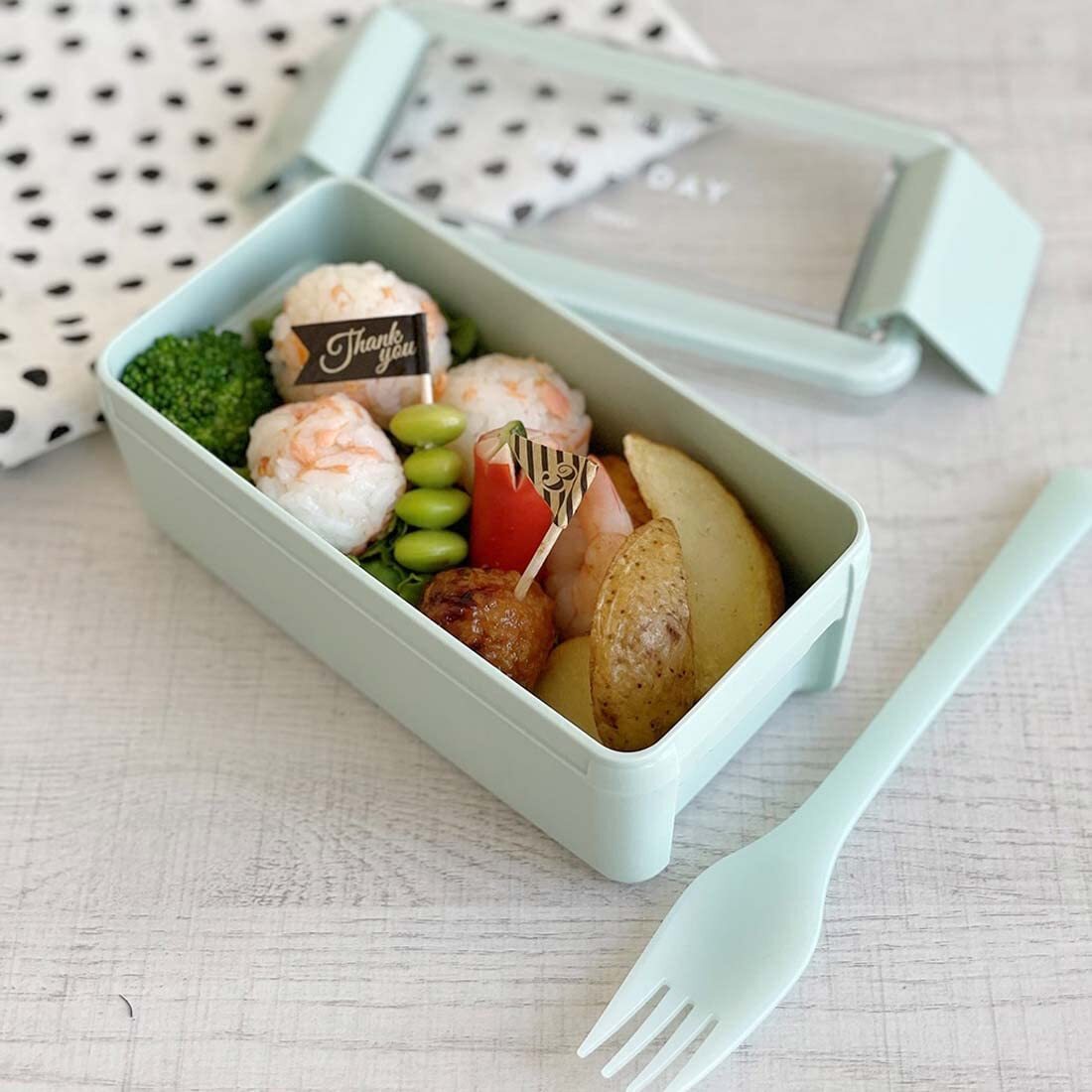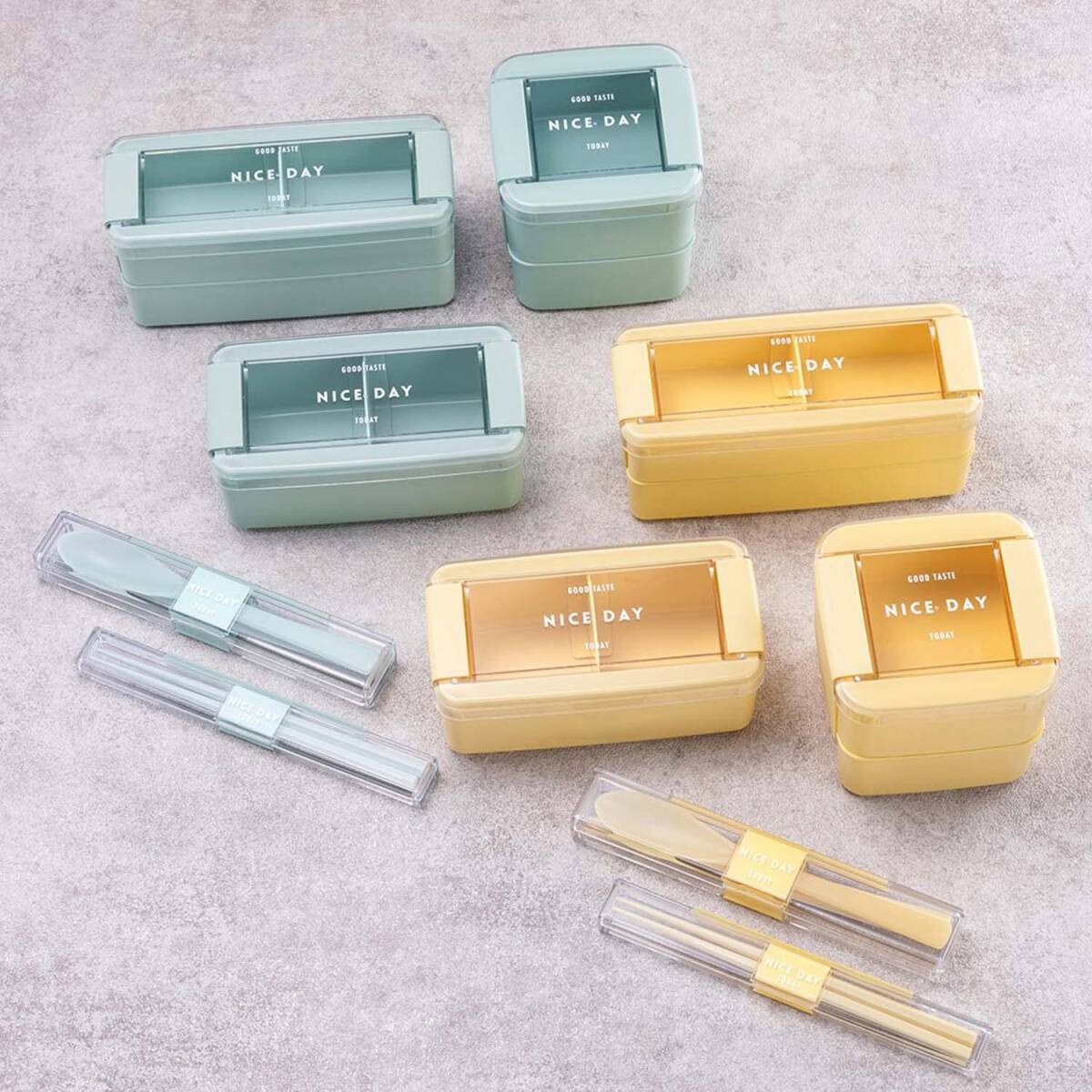 ・とっても強いケース入りトリオセット。ケース本体とフタ、フォーク、スプーンに衝撃に強い樹脂を使用。