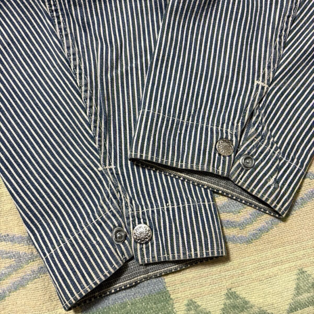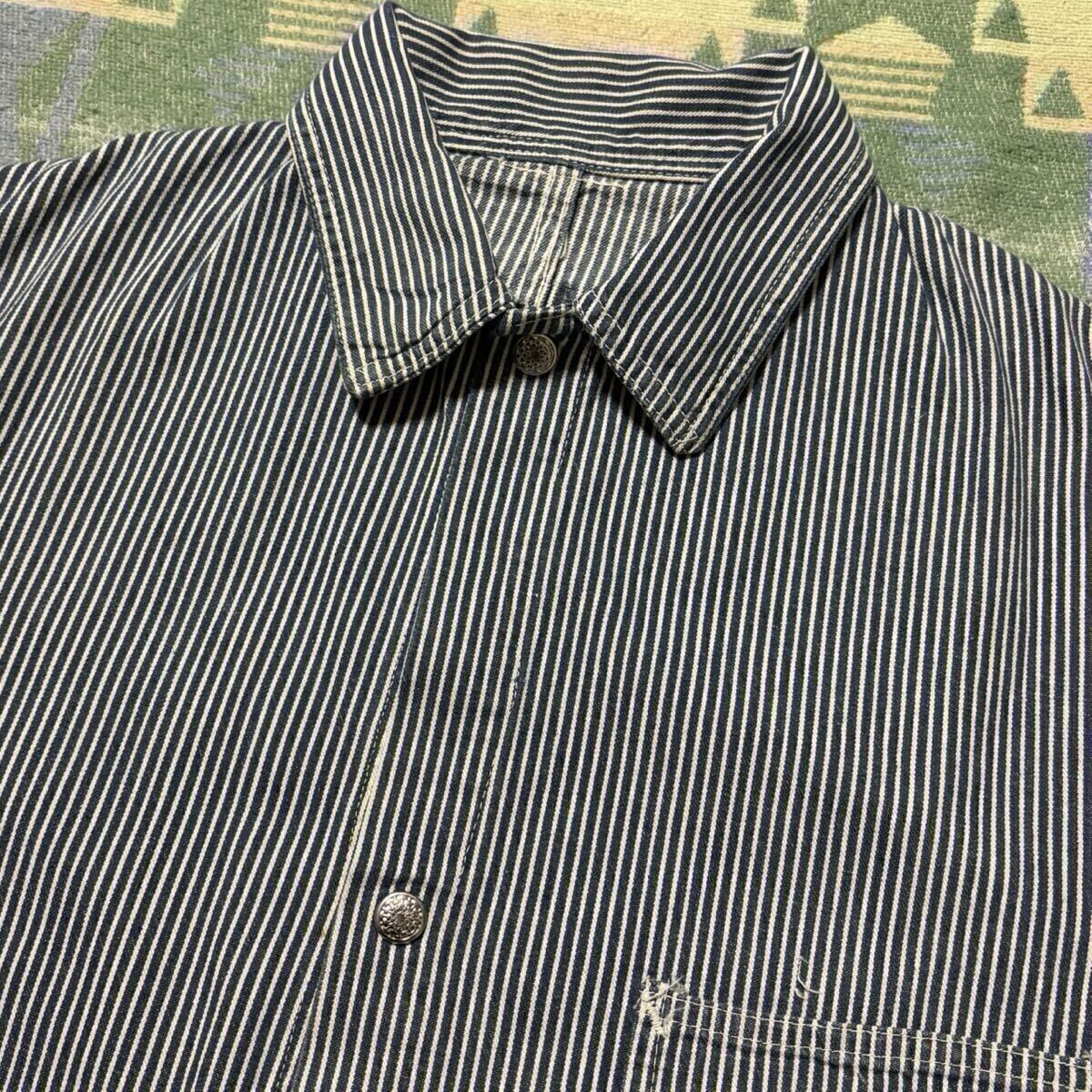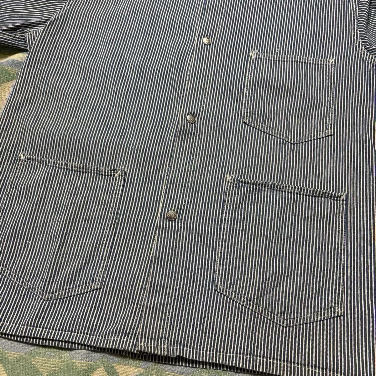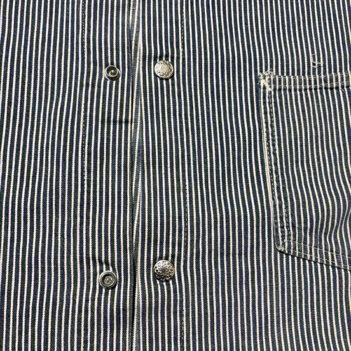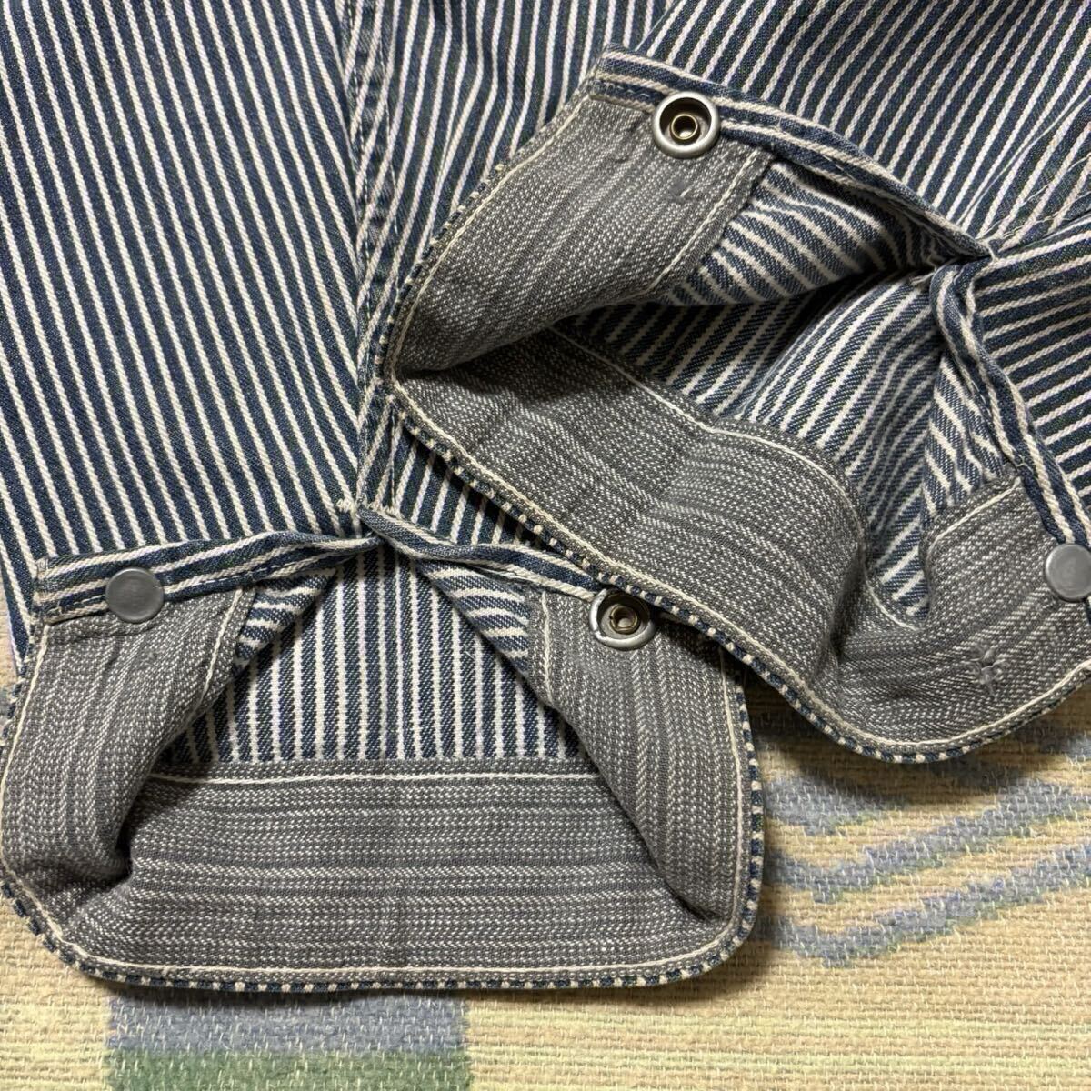 ヒッコリー生地といえば、紺地に白のストライプという柄が、油汚れや泥汚れをカモフラージュするのに役立つ生地の一つです。とは言え、当時の鉄道作業員やペンキ職、修理工が多く着用していた為、汚れが目立つ個体も自ずと多くなってしまう印象ですが、当個体はスナップボタンの歪みを除けば、ボディが非常に綺麗な状態の素晴らしいCOVERALLになります。