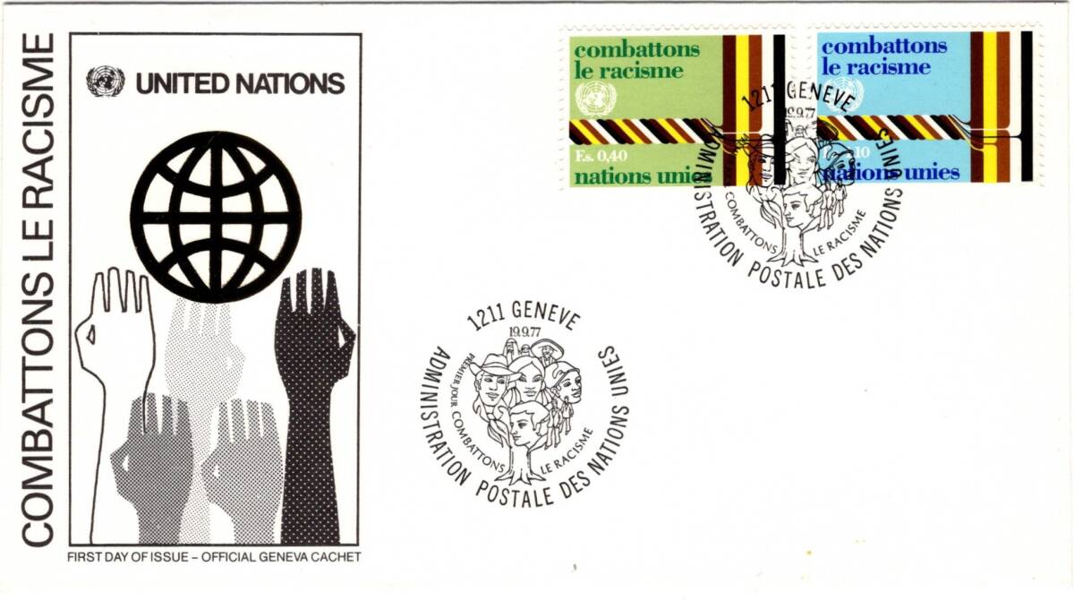 国連ジュネーブ局 1977 人種差別主義との戦い2種貼 初日カバー スイス