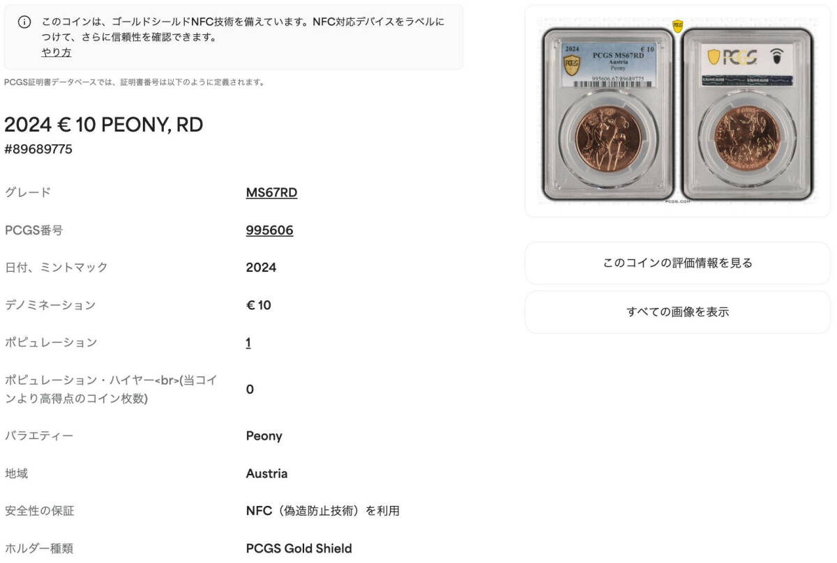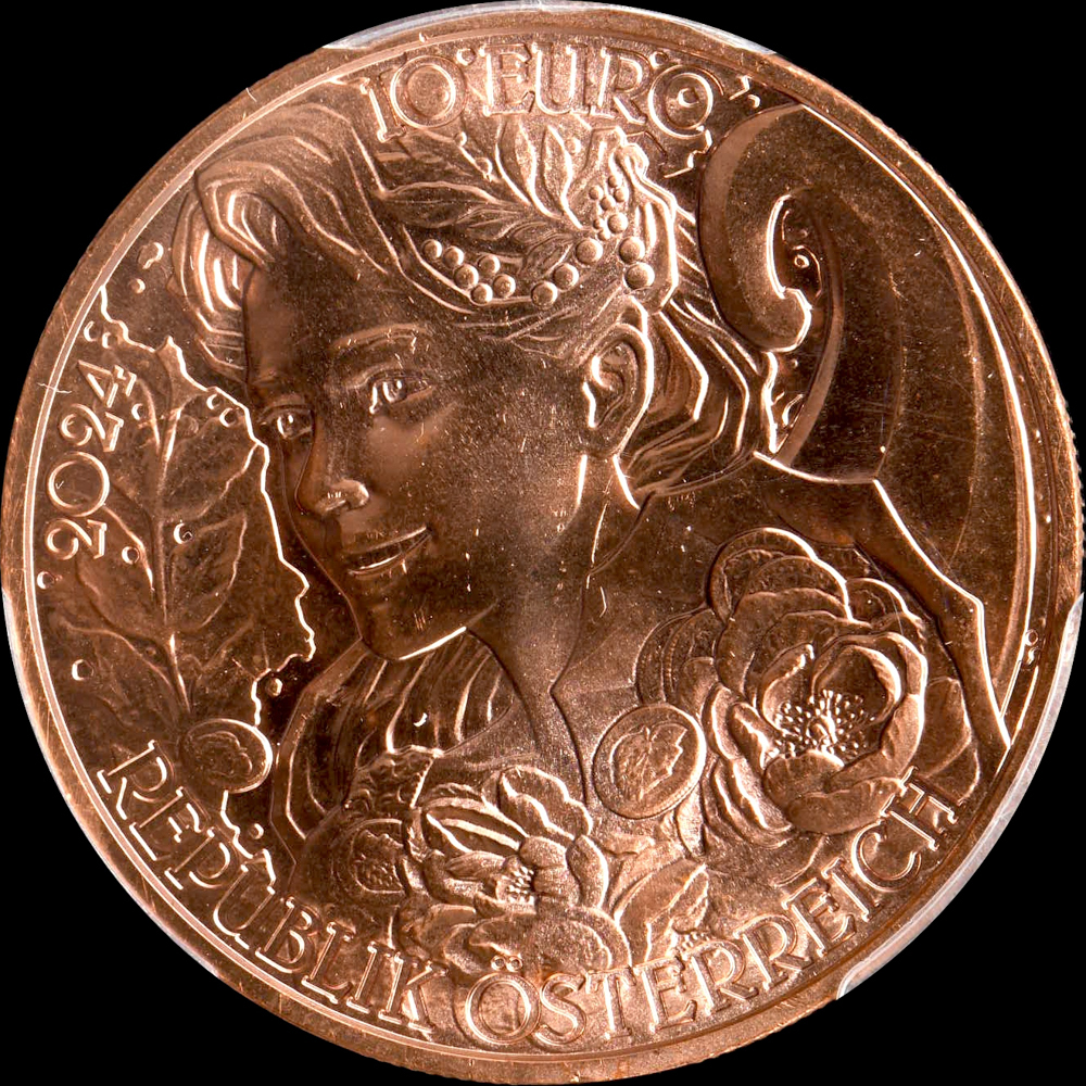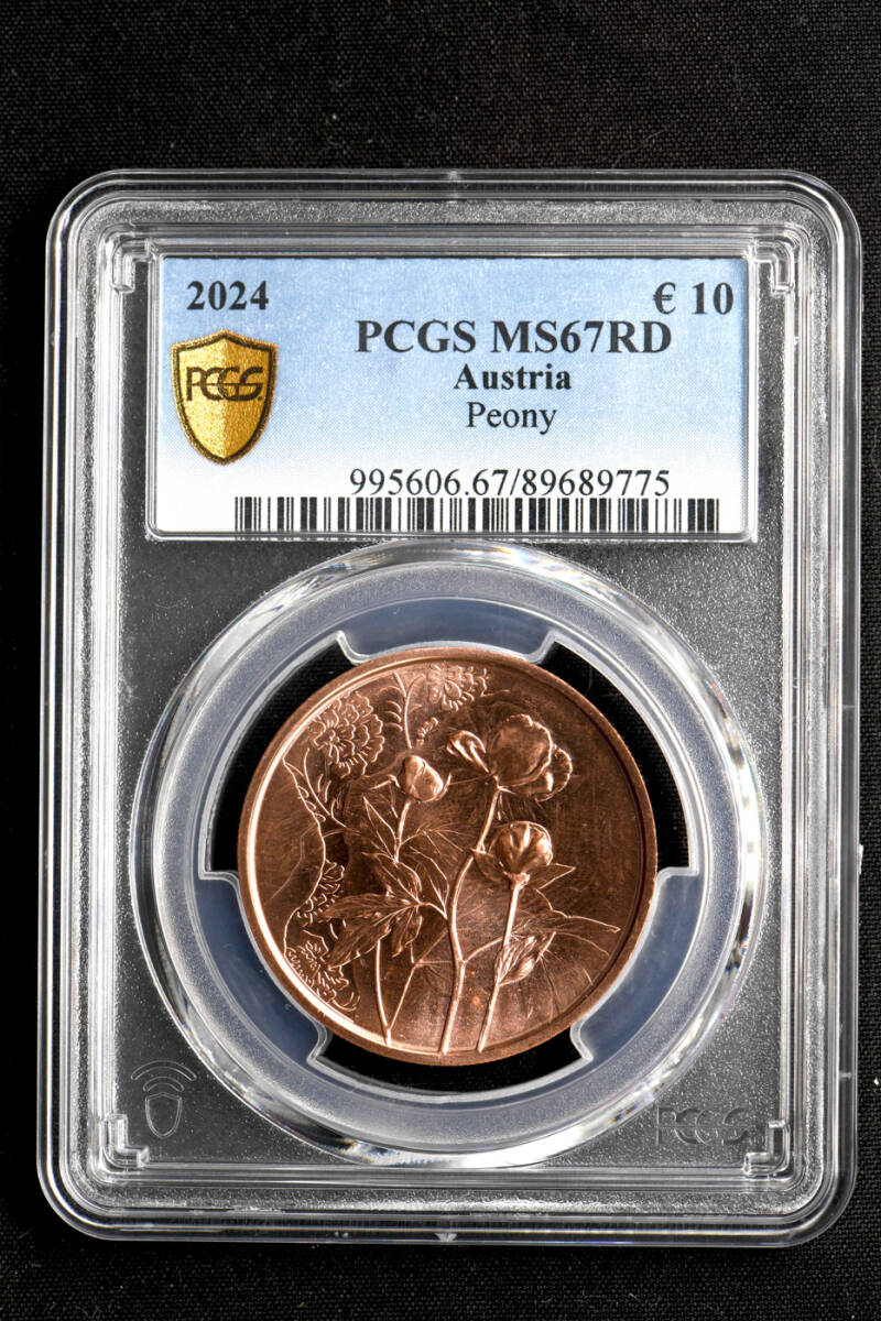 ★日終 【PCGS MS67RD ★P社唯一のTOP最高鑑定】2024 オーストリア シャクヤク 10銅貨 完全未使用//世界コイン 古銭【決済期限火曜日】