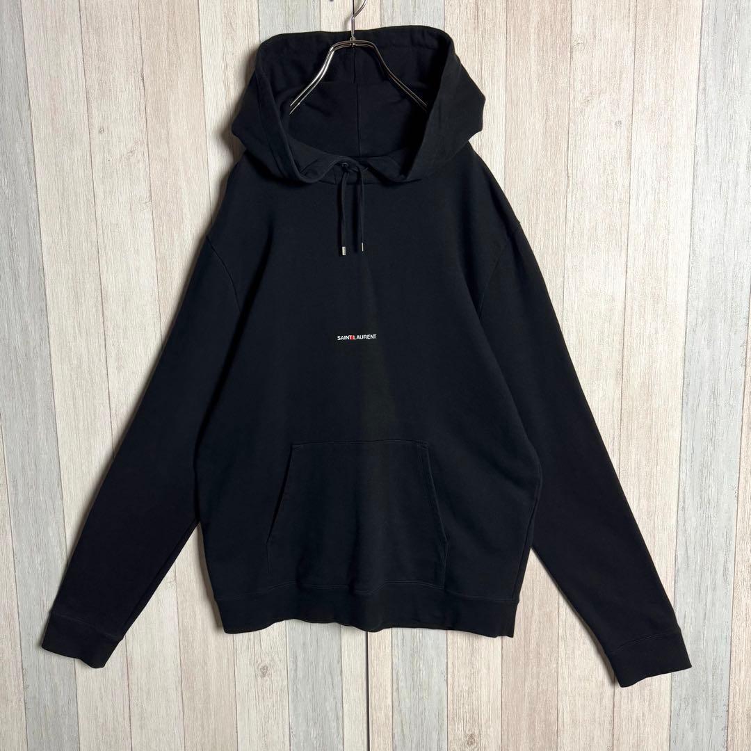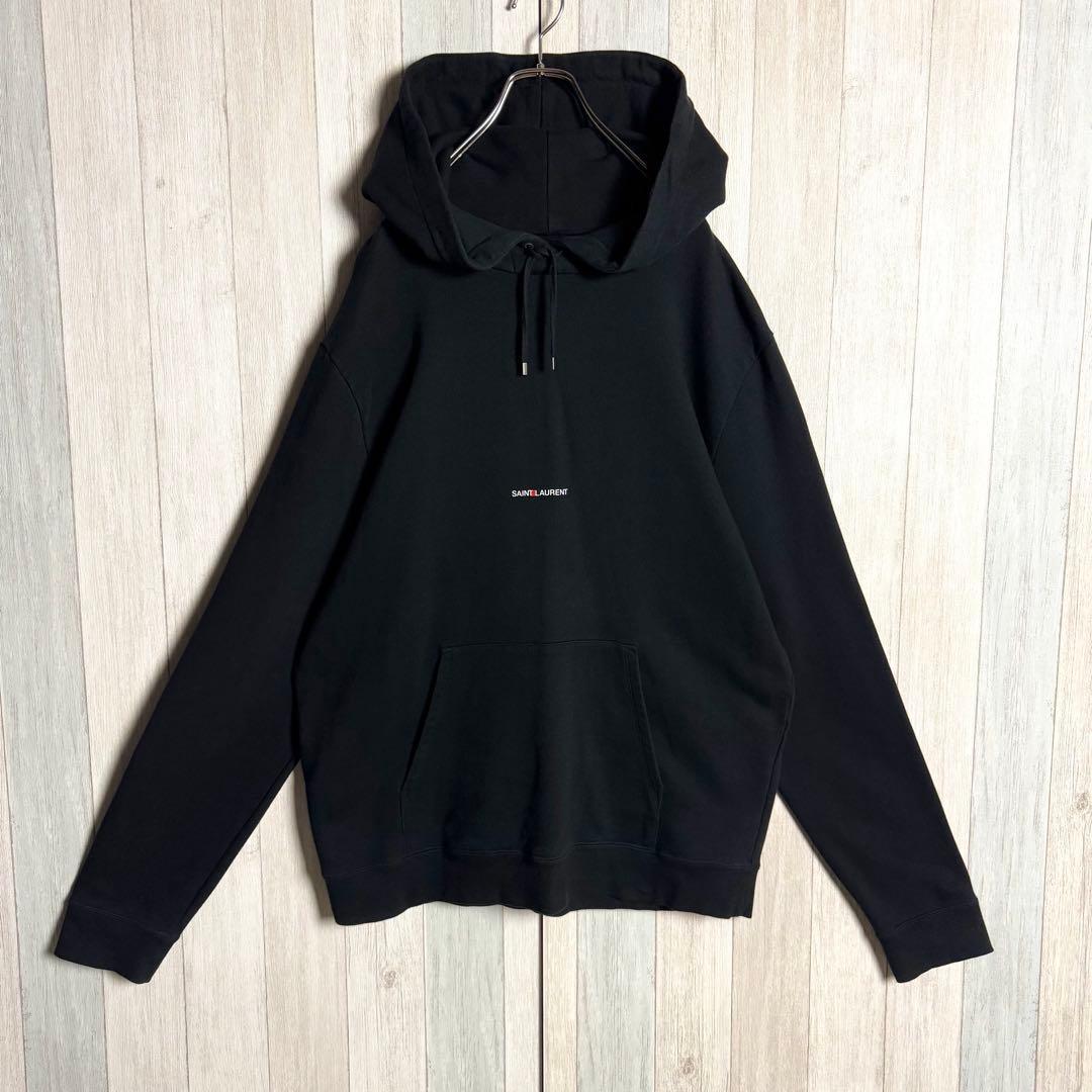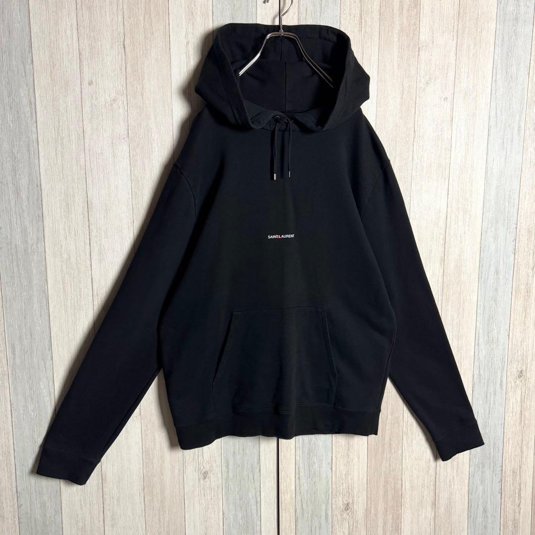 【人気デザイン・希少2XL】フランス製 SAINT LAURENT サンローラン 刺繍センターロゴ フーディー スウェット パーカー ブラック・黒