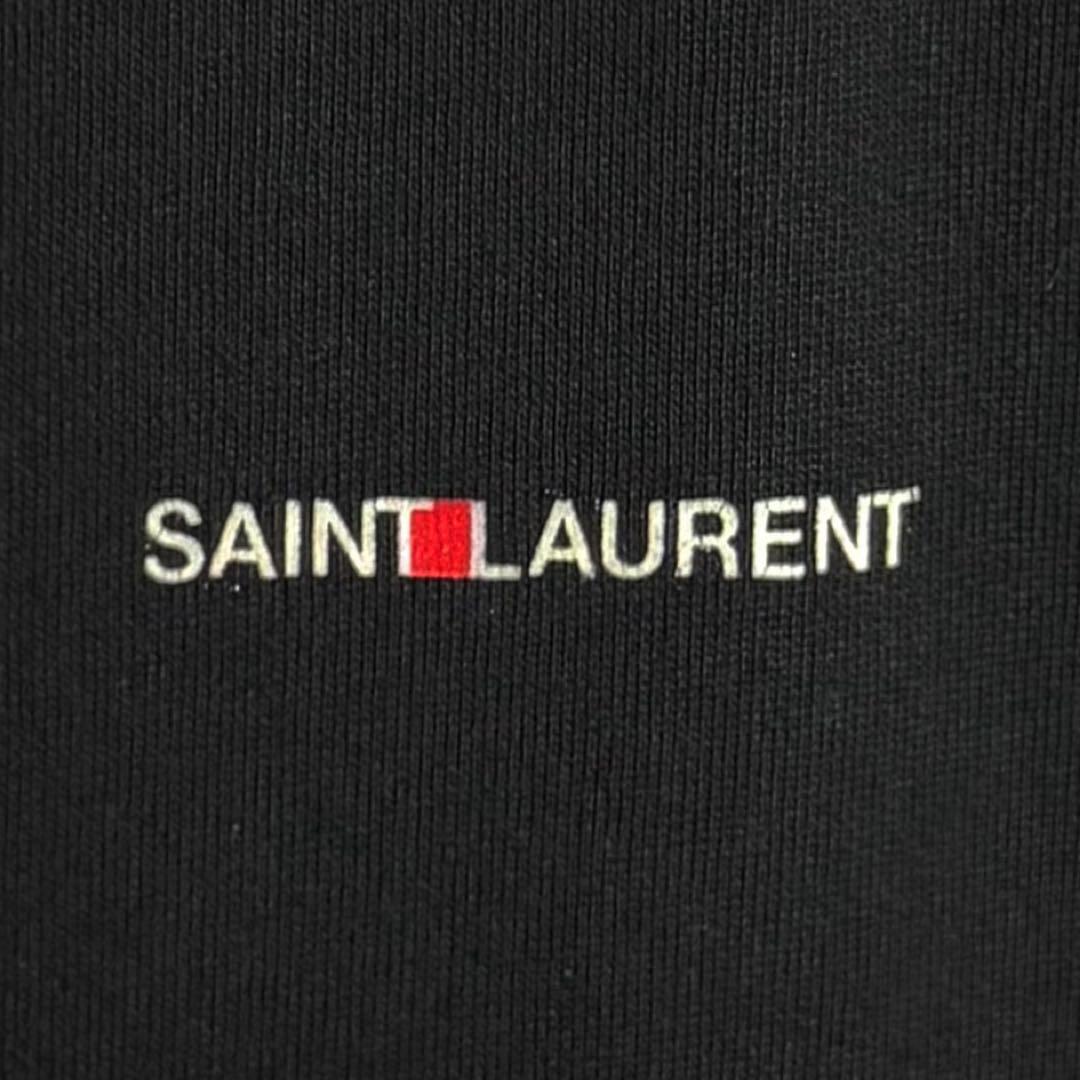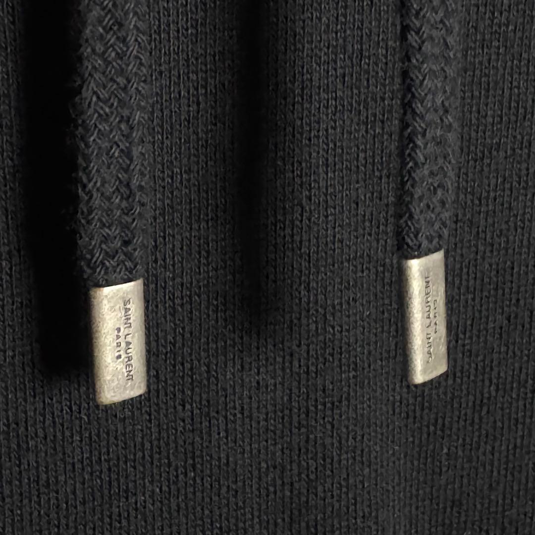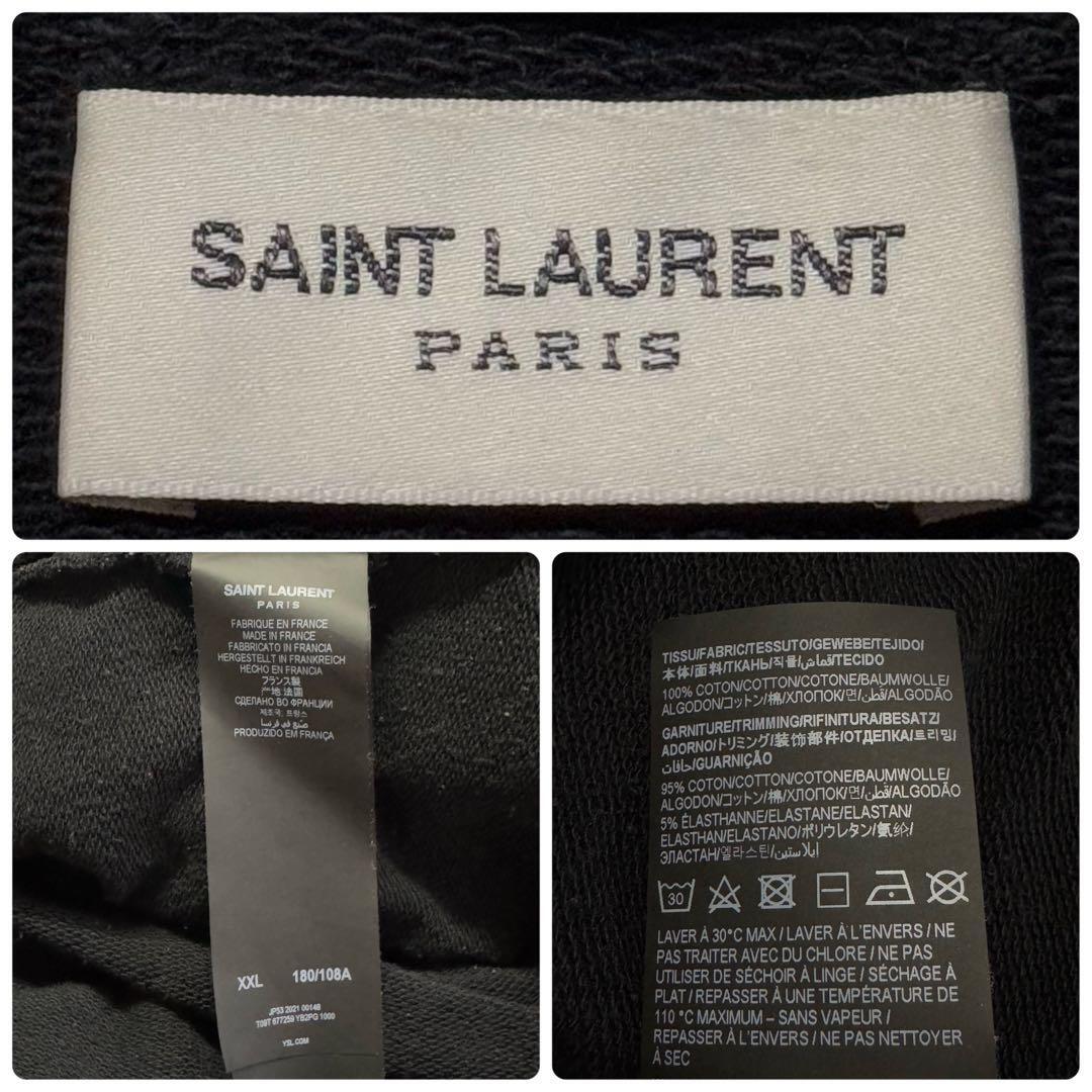 【人気デザイン・希少2XL】フランス製 SAINT LAURENT サンローラン 刺繍センターロゴ フーディー スウェット パーカー ブラック・黒