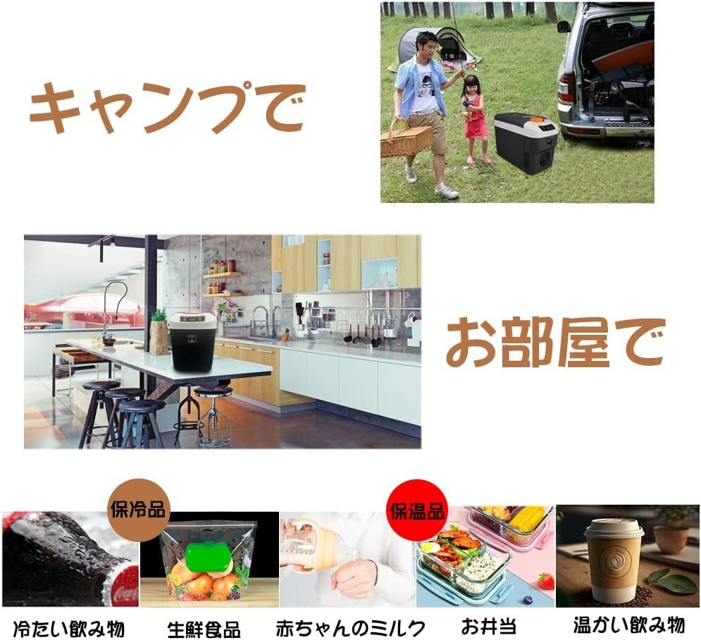 AC/DCの二電源搭載:AC100V~120Vの家庭用電源はお部屋で冷蔵庫として使えたり、お出かけ前に冷やして事前の準備もできます。車内のシガーソケットに接続できるDC12V/24V電源コードも付属しています。レジャーやドライス、アウトドアにも大活躍します