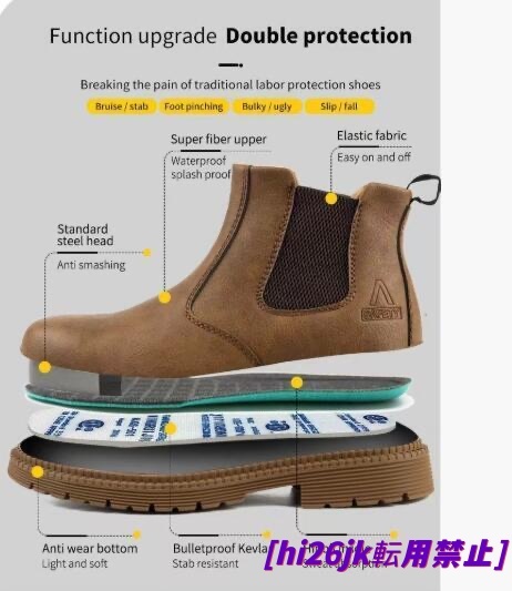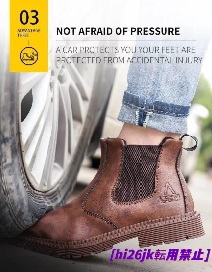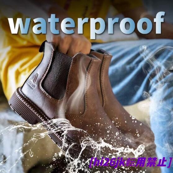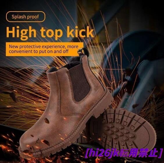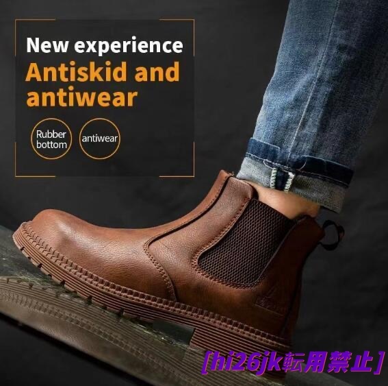 新品安全靴 ハイカット メンズ 防水安全靴 作業靴スニーカー 溶接用ブーツ つま先保護 おしゃれ 耐滑 チェルシーブーツ茶色 24.5cm~28cm