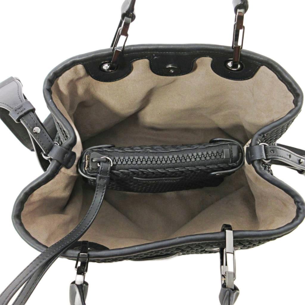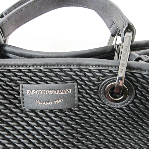 エンポリオアルマーニ EMPORIO ARMANI MyEA ショッパー ハンドバッグ ショルダーバッグ エンボスナッパレザー 2WAY ブラック 黒 ☆AA★