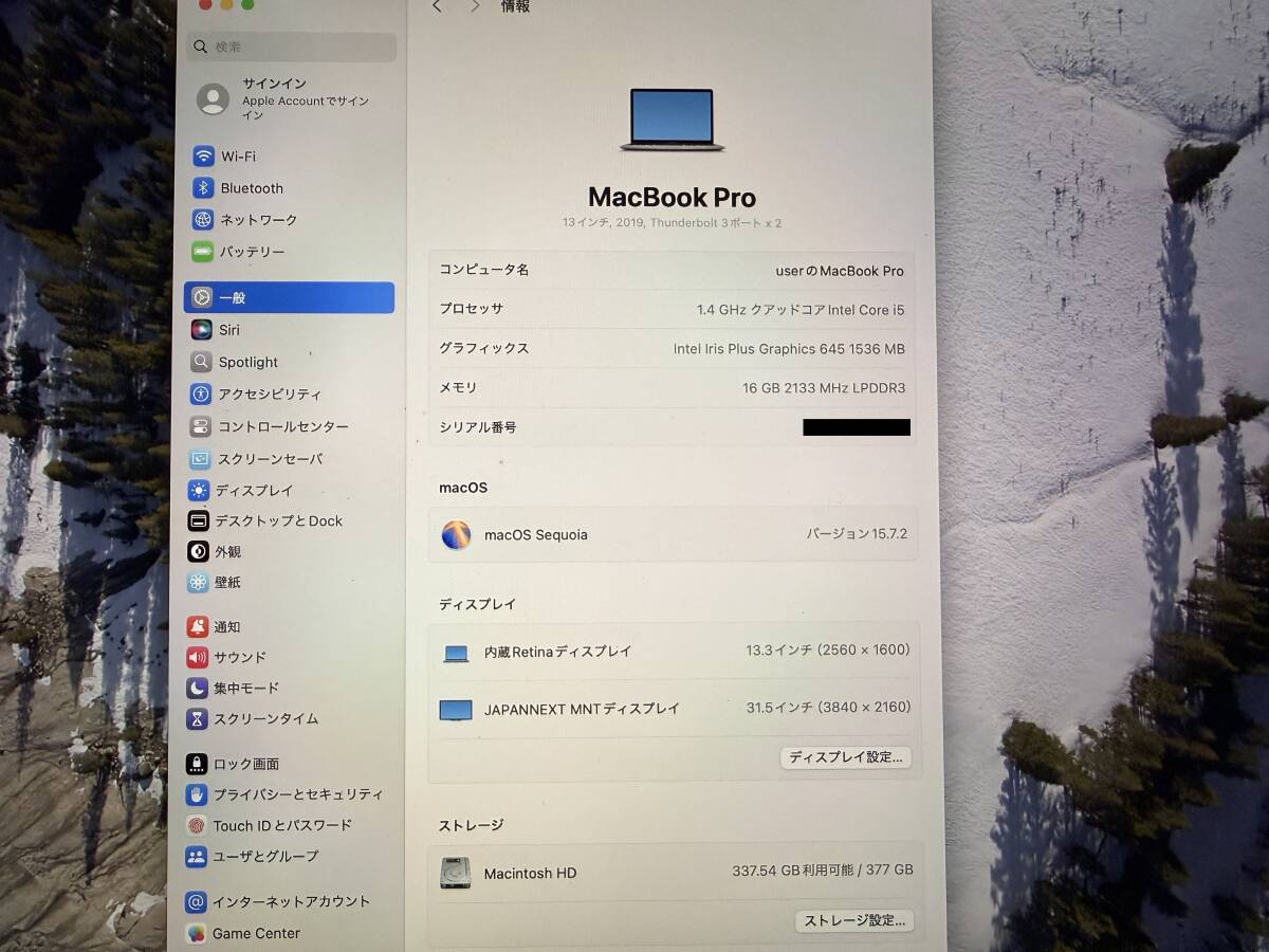 Apple MacBookPro(13-inch, 2019, Thunderbolt 3ポートx 2) メモリ16GB 訳あり品