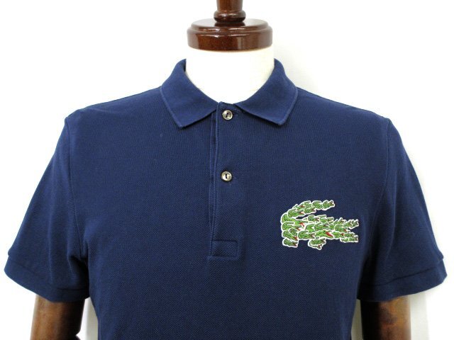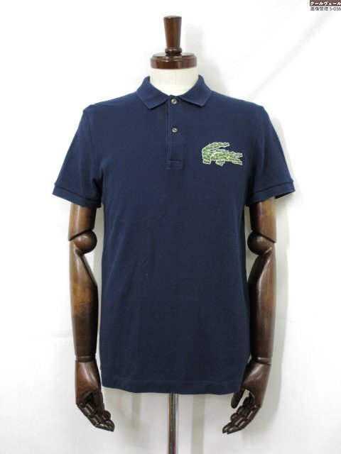 美品【ラコステ LACOSTE】 REGULAR FIT ワッペン 鹿の子生地 半袖ポロシャツ (メンズ) sizeS 暗めのネイビー ◇33MT6475◇