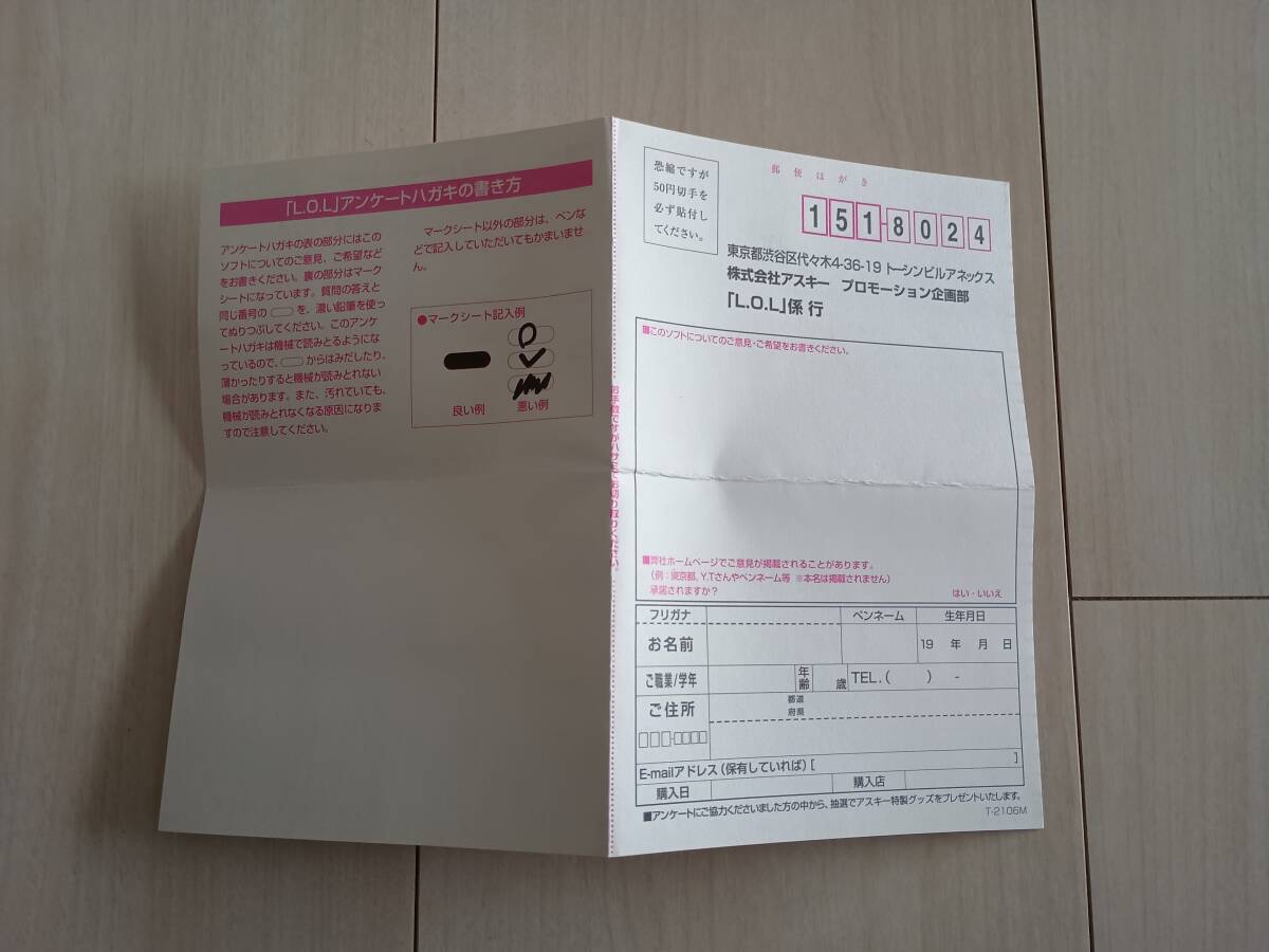 ハガキのみで、ゲームソフトや説明書等はつきません。