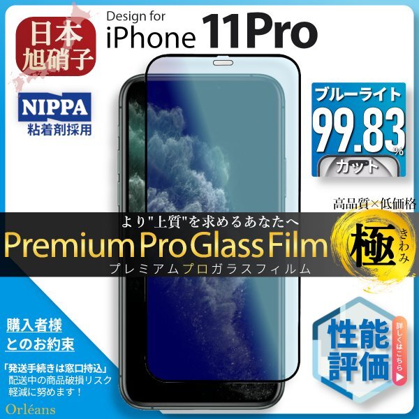 iPhone 11 Pro ブルーライトカット 強化ガラスフィルム 旭硝子 全面保護 自動吸着 保護フィルム 液晶保護フィルム
