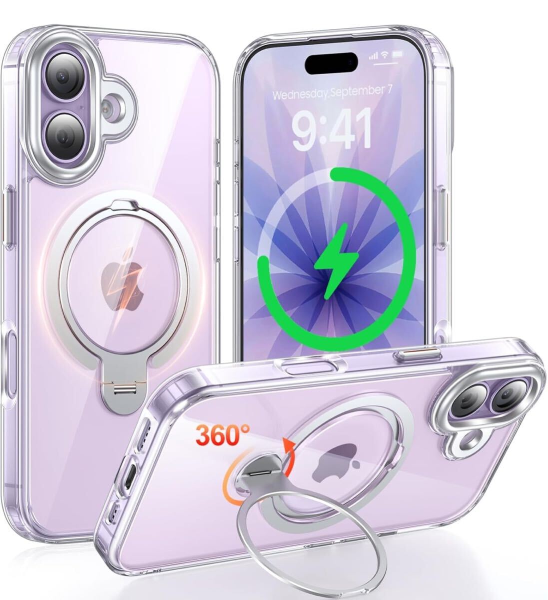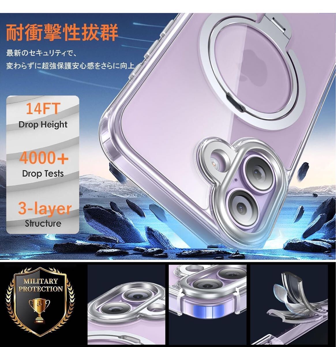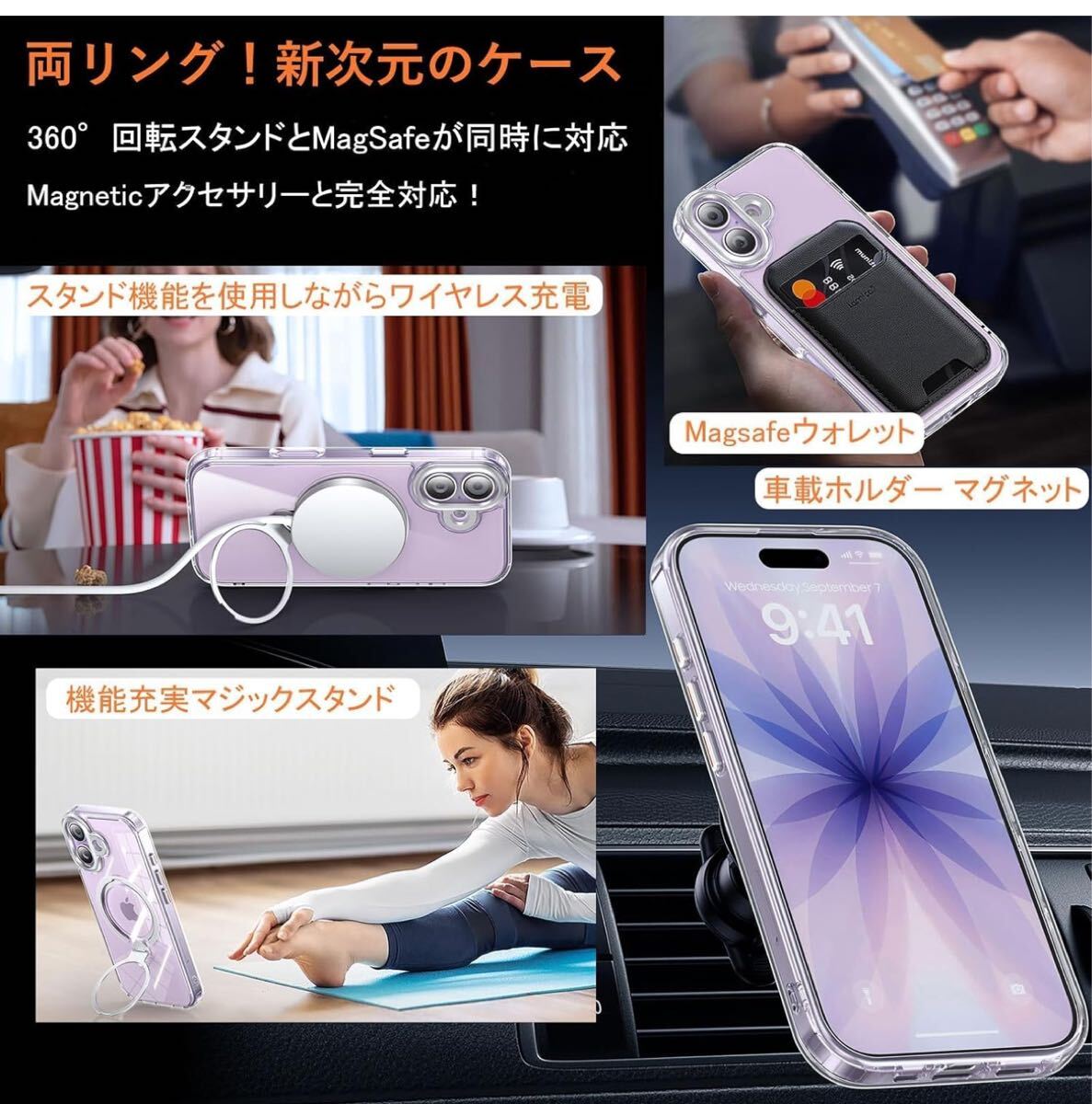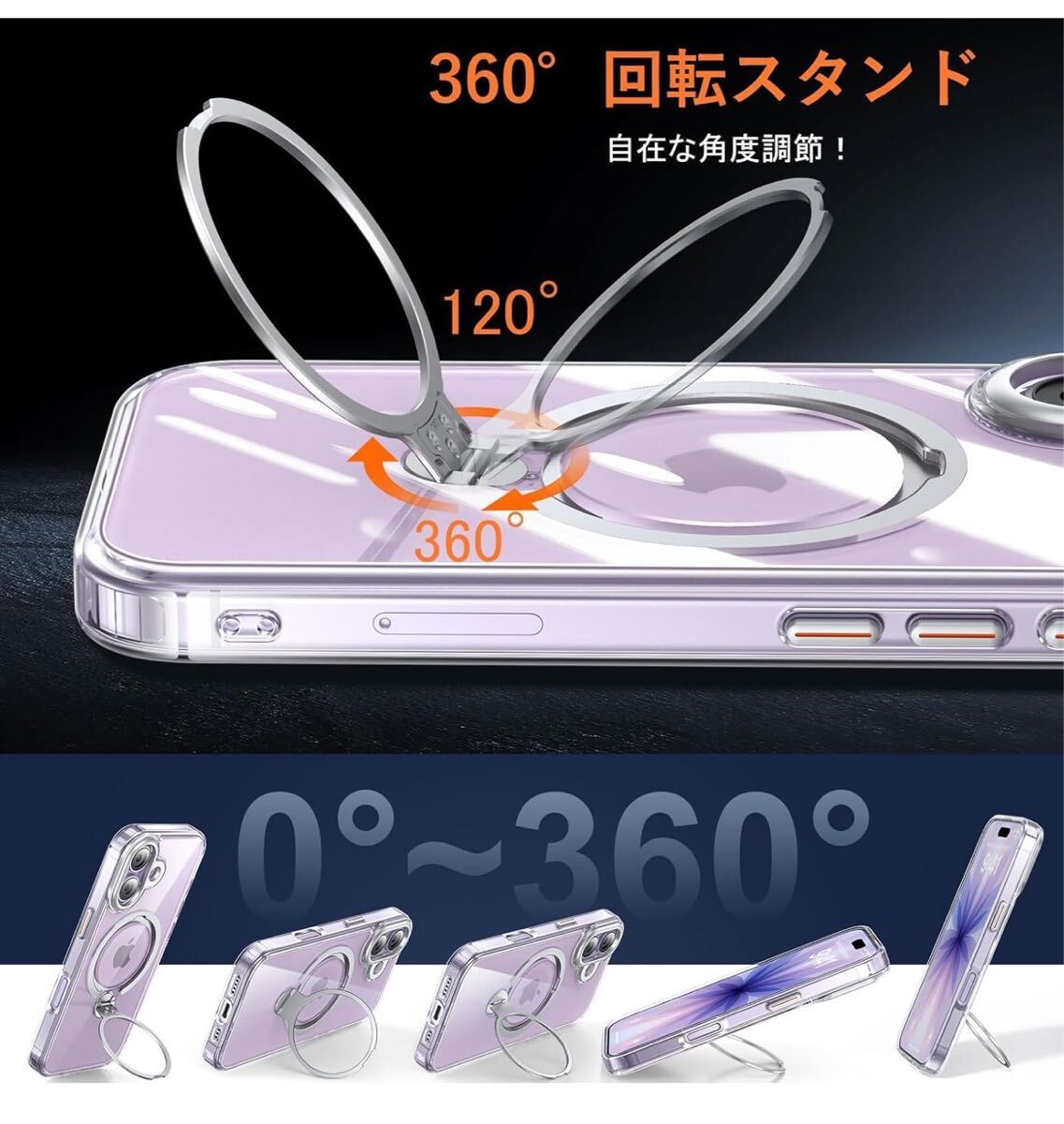 iPhone 17 用 ケース MagSafe対応 リング360°回転スタンド機能 縦横両対応 透明 黄ばみ防止 ワイヤレス充電 いphone17 スマホケース レンズ保護 耐衝撃 携帯カバー アイフォン 17 ケース マグネット搭載 車載ホルダー マグセーフ対応 おしゃれ-クリア
