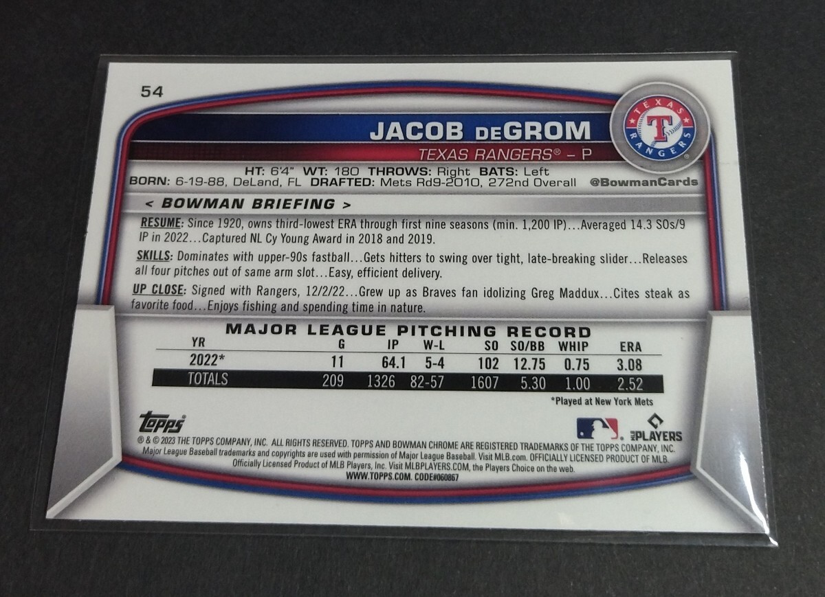 MLB 2023年Bowman chrome ジェイコブ・デグロム(レンジャーズ)silver pack。 No,54,。Rangers JACOB DEGROM