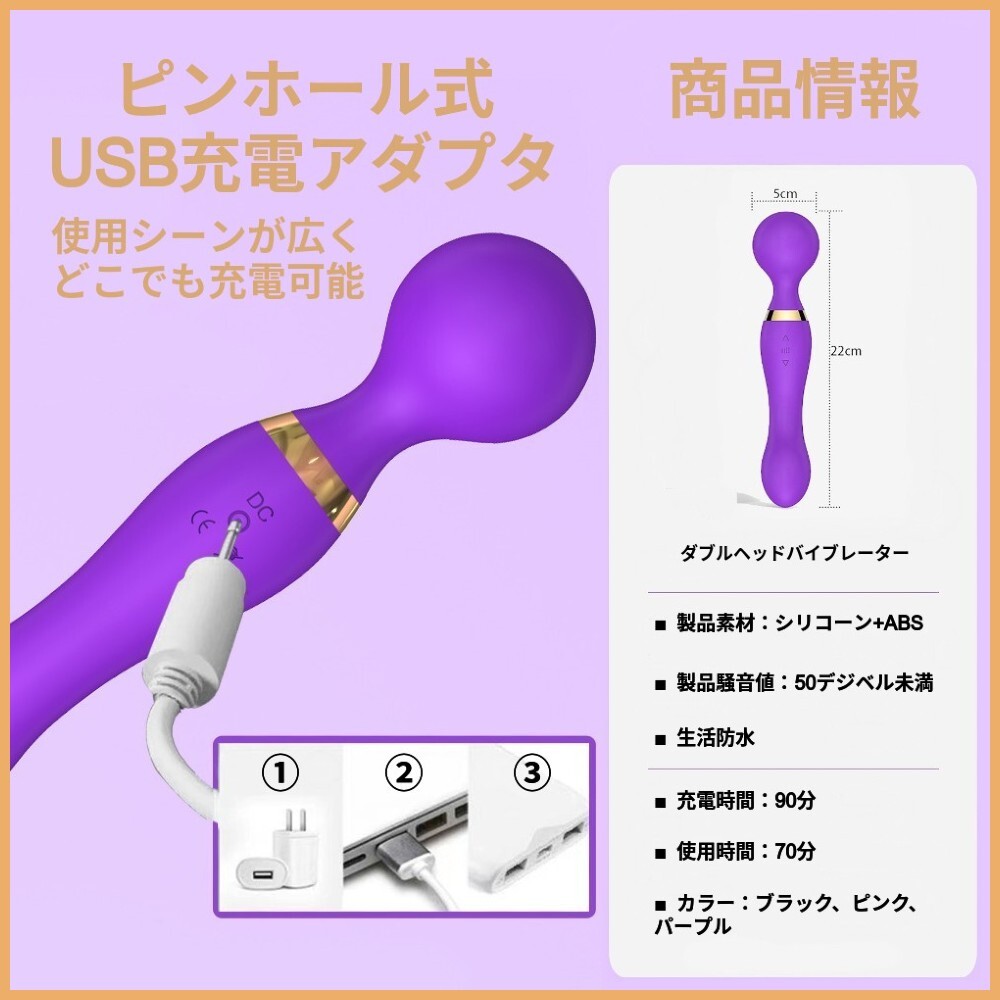 【匿名配送】人気 20種類振動 ダブルヘッド コードレス USB充電式 マッサージ 電動マッサージ ハンディマッサージャー 防水 静音 ブラック