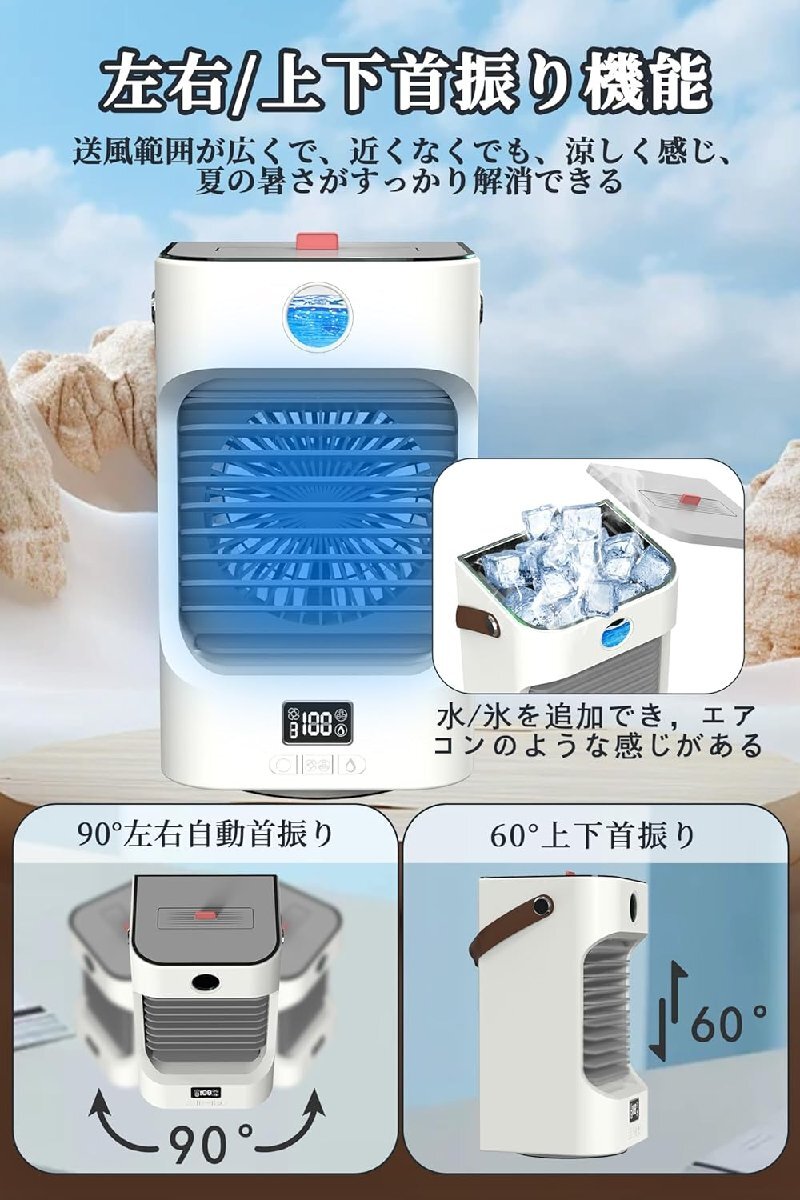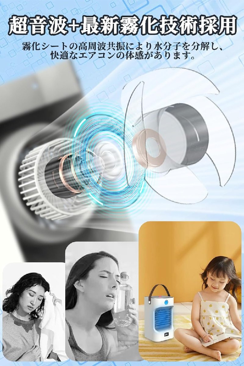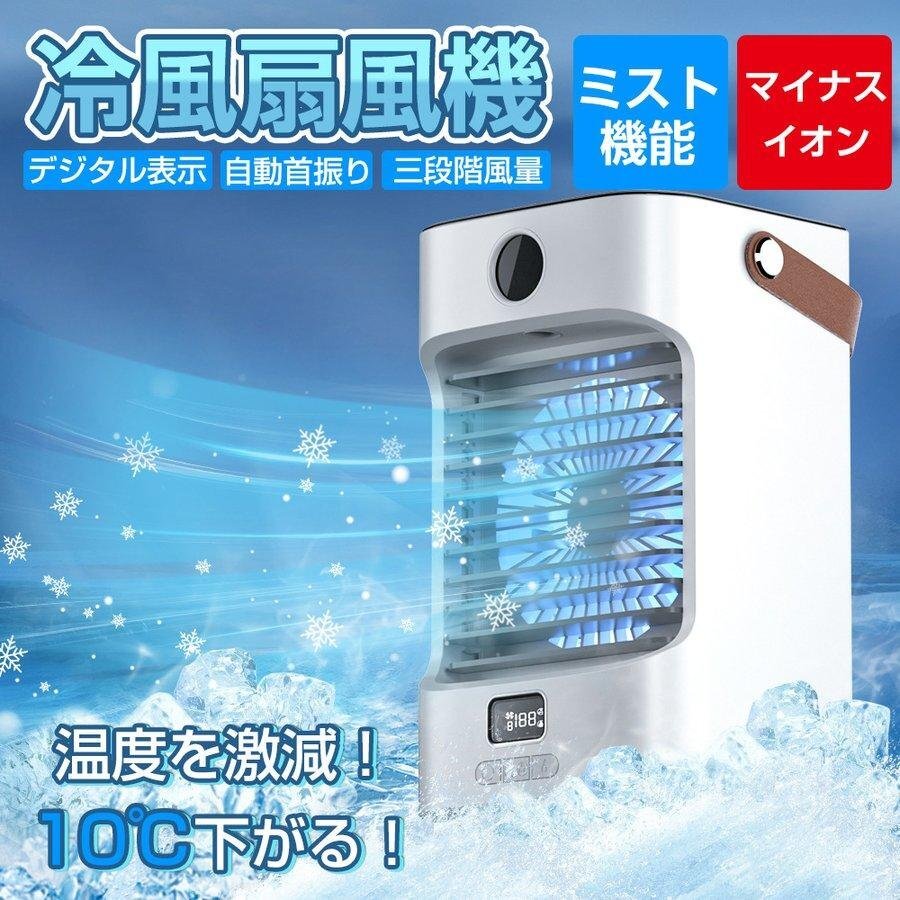 【多機能冷風機】送風、冷却加湿機能を揃えている冷風機小型ミニクーラーです。普通の扇風機より涼しく、噴霧機能を追加、水が超音波で加工され、繊細なミストになります。、エアコンほど寒くならないので日中でも快適に利用できます、子ども、女性やお年寄りなど、冷えに敏感な方におすすめします。
