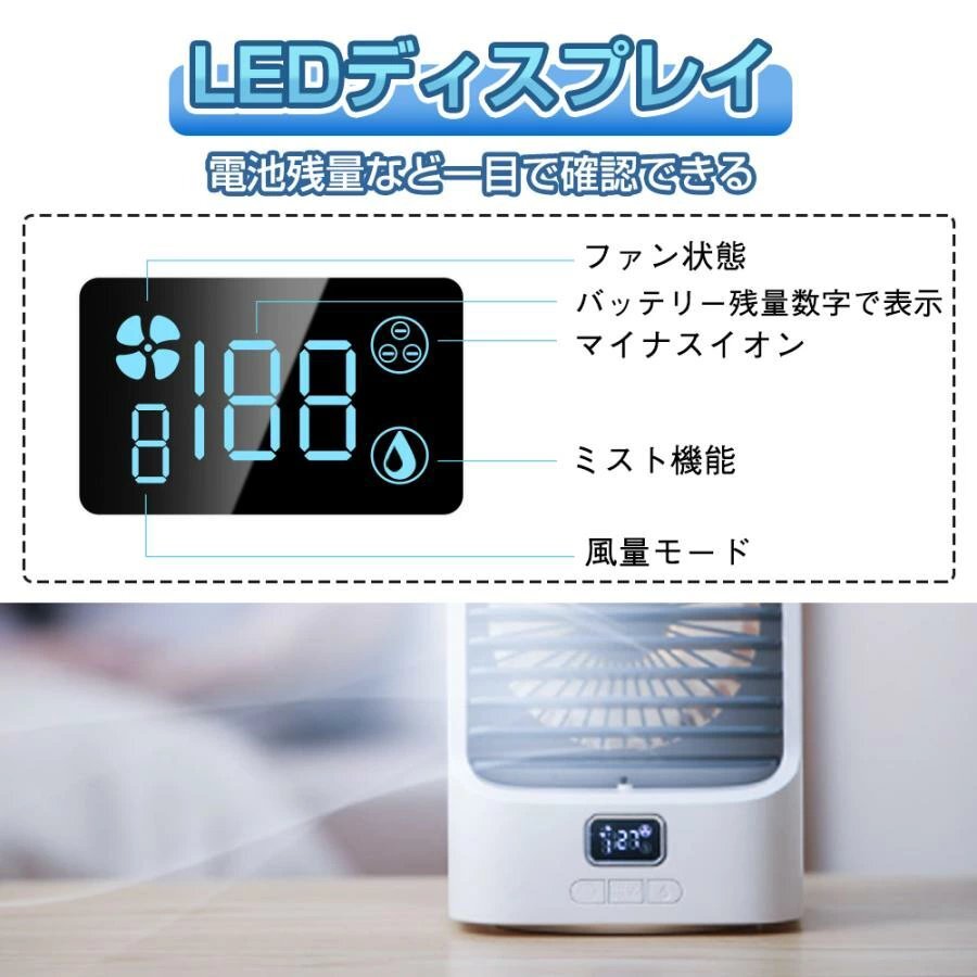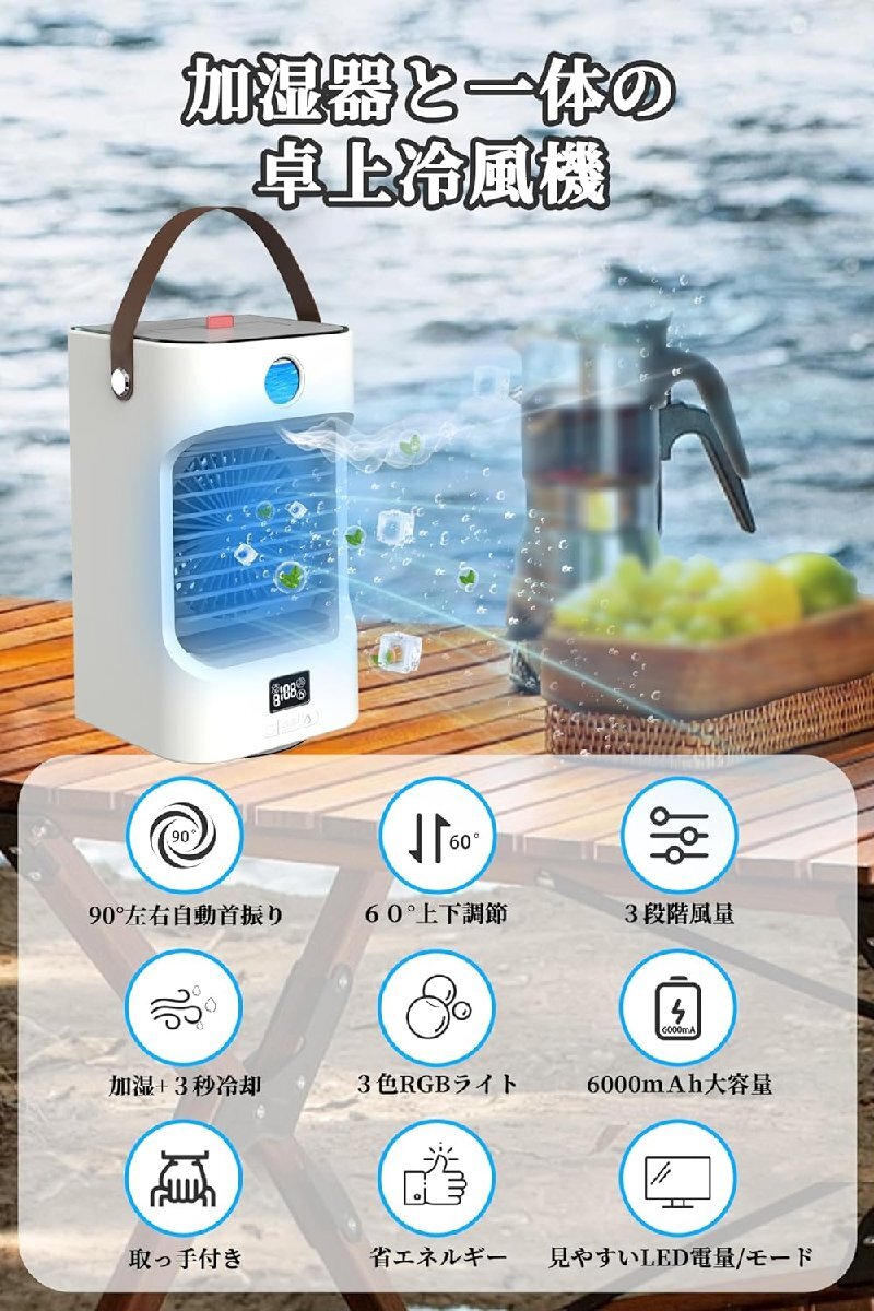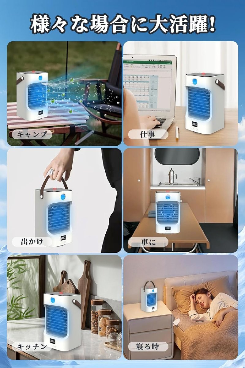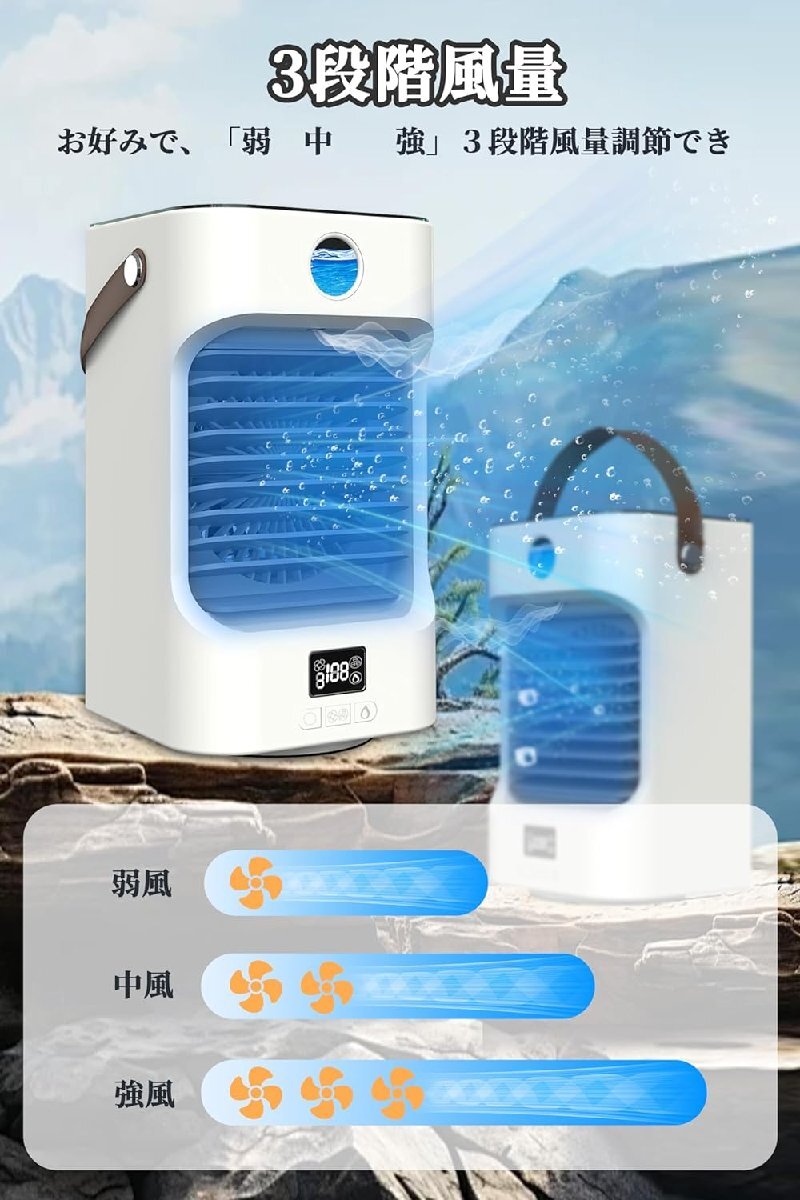 【多機能冷風機】送風、冷却加湿機能を揃えている冷風機小型ミニクーラーです。普通の扇風機より涼しく、噴霧機能を追加、水が超音波で加工され、繊細なミストになります。、エアコンほど寒くならないので日中でも快適に利用できます、子ども、女性やお年寄りなど、冷えに敏感な方におすすめします。