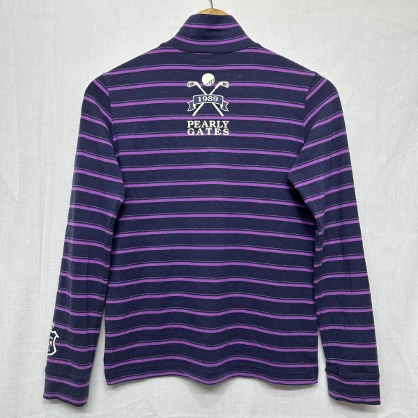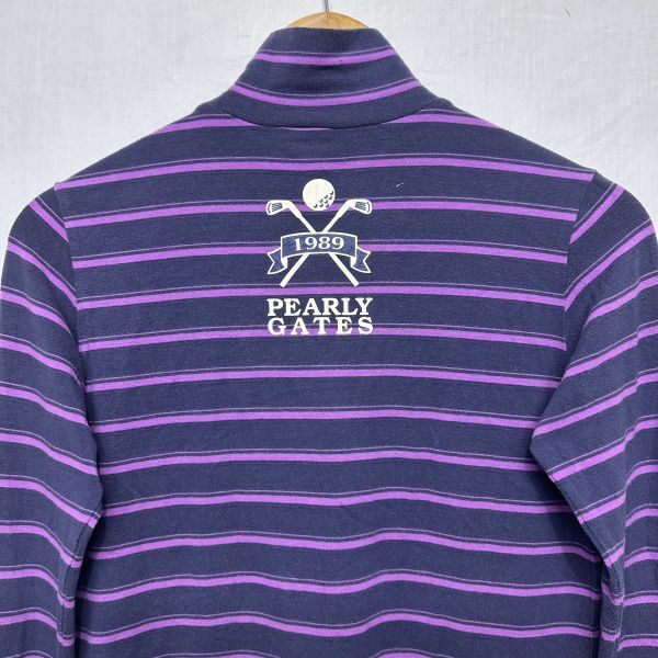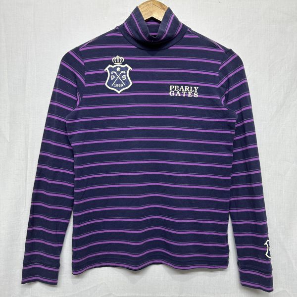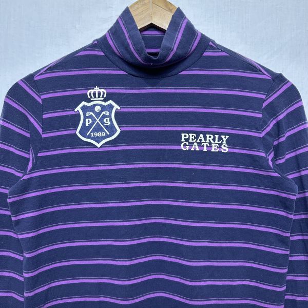 〇PEARLY GATES パーリーゲイツ ロング スリーブ 長袖 モック ネック T シャツ GOLF ゴルフ スポーツ ウエア 1(M) 紺 ネイビー