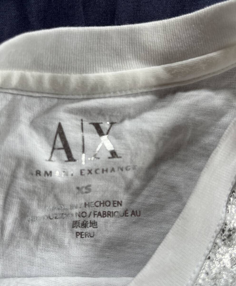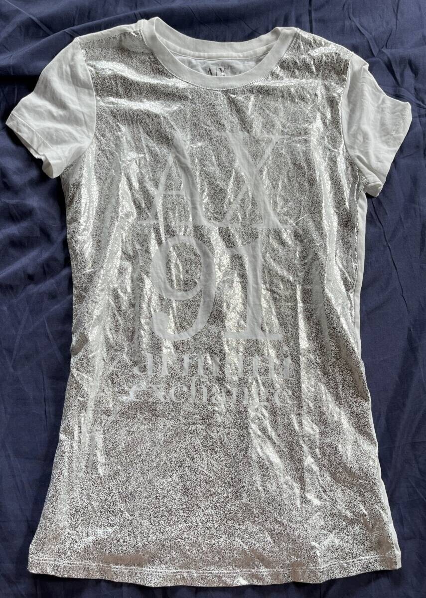ARMANI EXCHANGE アルマーニエクスチェンジ ロゴ プリント 半袖 Tシャツ シャツ カットソー トップス 白 レディース XS シルバー