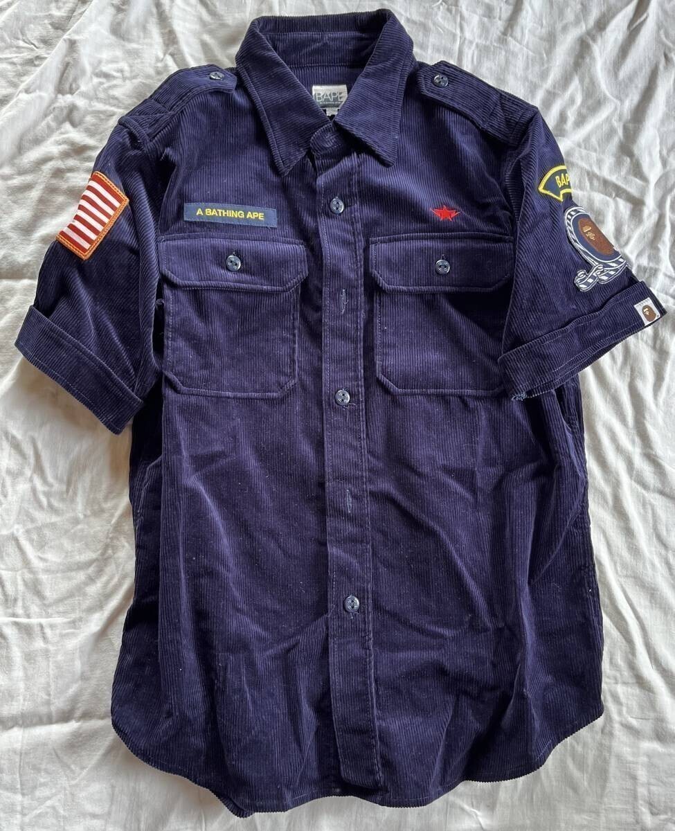 BAPE BY A BATHING APE/ベイプ バイ ア ベイシングエイプ  シャツ 半袖 シャツジャケット コーデュロイ ワッペン 高級