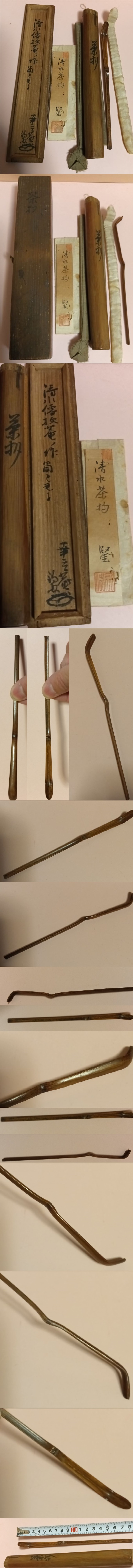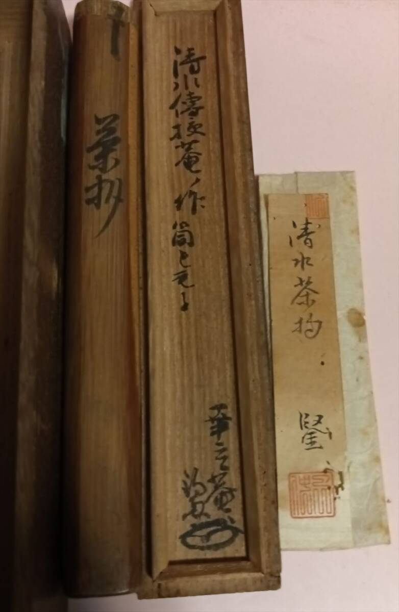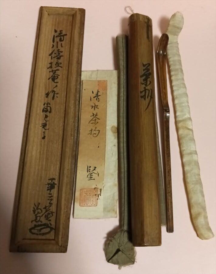 貴重 石州清水流 清水道閑 伝習庵 班竹 煤竹 茶杓 共筒 筒服 識補箱 花押 茶道具