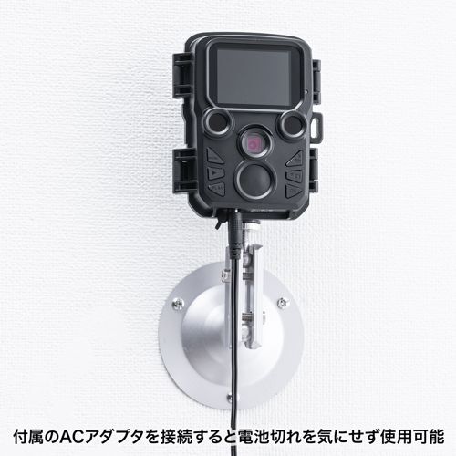 ※配送の送り主はサンワサプライ(株)と記載されています。沖縄・離島配送不可となります。 当店は正規販売代理店です。 特長 防犯や野生動物観察に適したセンサー内蔵カメラです。 従来品の半分以下のサイズでカメラが目立ちません。 高解像度4K撮影が可能です。 高輝度赤外線LEDを2灯内蔵しており、小型ながら約12m先まで照らすことができます。 スタンバイモードで最大6ヶ月待機できる省電力設定です。 夜間と昼間のモードはセンサーで自動的に切り替えます。 ※夜間はモノクロ撮影になります。 雨の中でも使用できるIP66防水設計です。 ※ACアダプタ使用時は防水効果はなくなります。 タイムラプス撮影(インターバル動画撮影)が可能です。 付属のACアダプタ(3m)を接続すると電池切れを気にすることなく使用できます。 メーカー保証期間180日 ※当店発注日からになります。 気をつけておりますが、タイミングによっては在庫切れの場合があります。 仕様