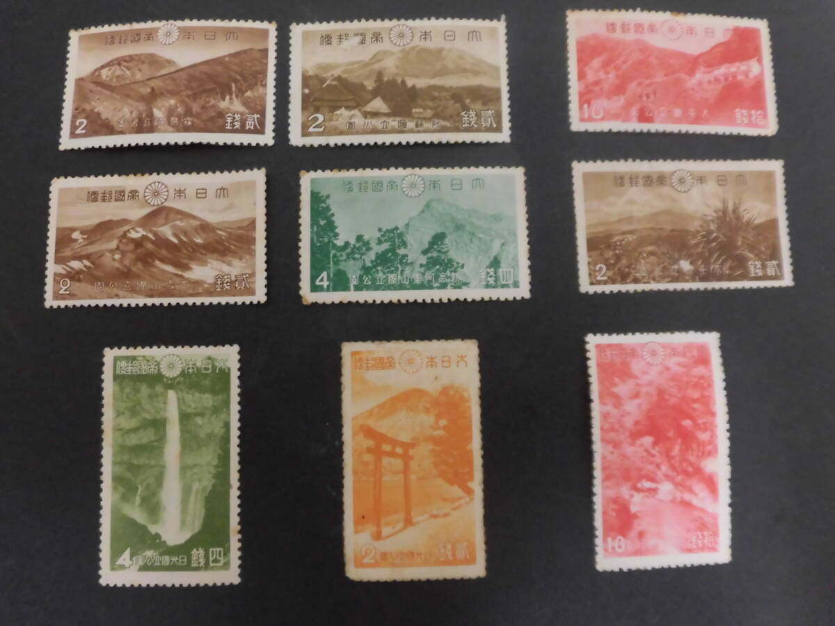 <未使用品 現状品★レトロ切手 第1次国立公園切手 国立公園 大日本帝国郵便 切手 まとめて 合計9枚>