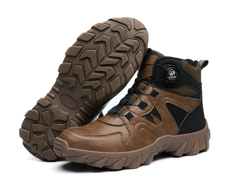 ダイヤル式安全靴 ハイカット 防水 鋼製先芯入り 作業靴 耐滑 釘踏み抜き防止 耐摩耗 ブラウン サイズ:26cm