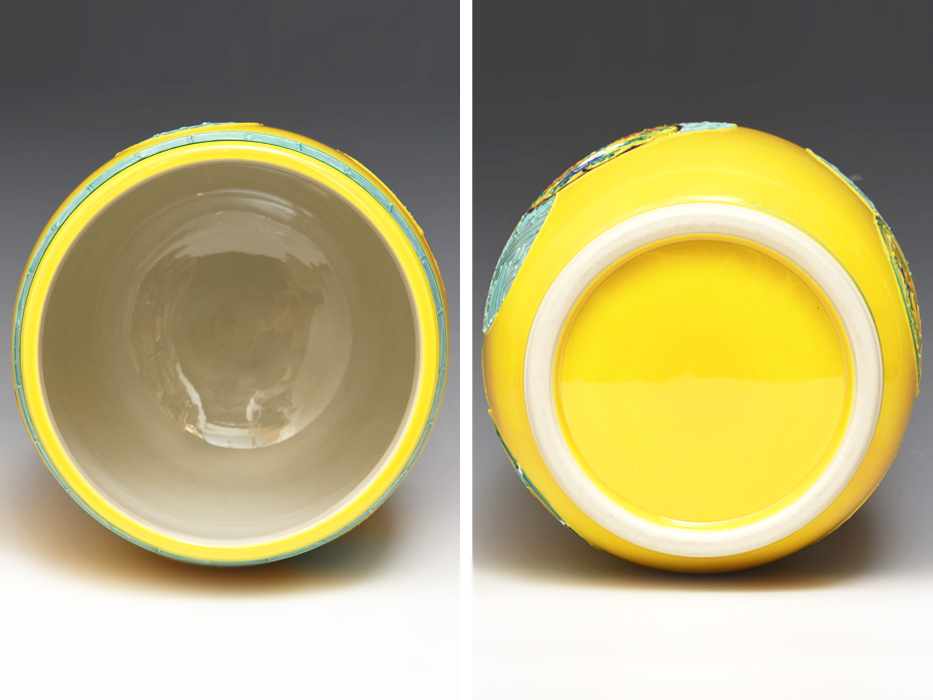 曽根幸風 (造) 黄交趾四君子図 皆具 水指 杓立 建水 蓋置 共箱 しおり |