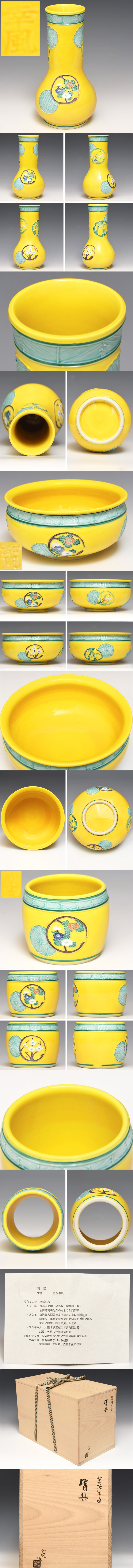 曽根幸風 (造) 黄交趾四君子図 皆具です。 鮮やかな黄交趾に四君子(蘭・竹・梅・菊の4つの植物)が色絵で施された良いお品物です。 使用感なくコンディションは良好です。 ※撮影の際に生じた写り込みなどがございます。 ご理解の程よろしくお願い致します。 |