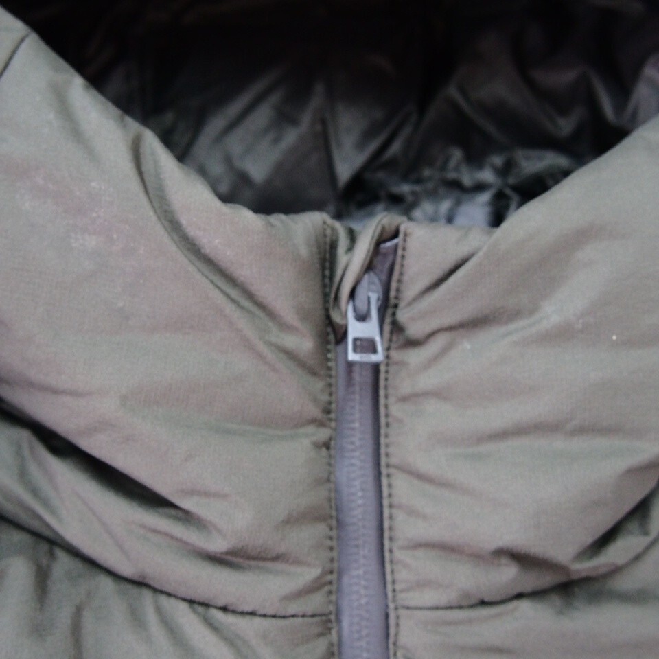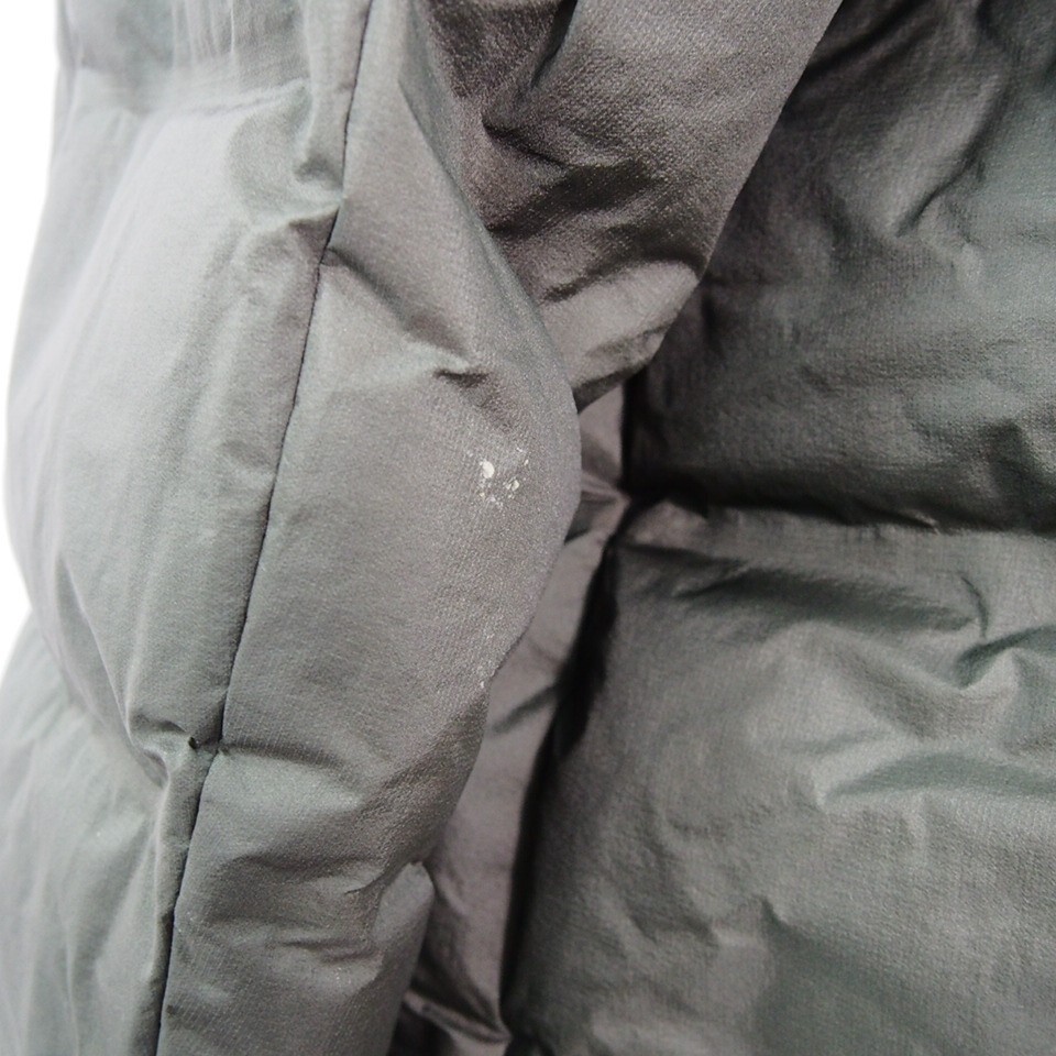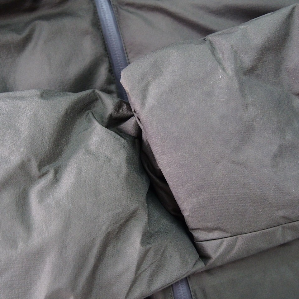 袖や袖先、首元やフードまわり、身頃等所々にシミや薄汚れがございます。