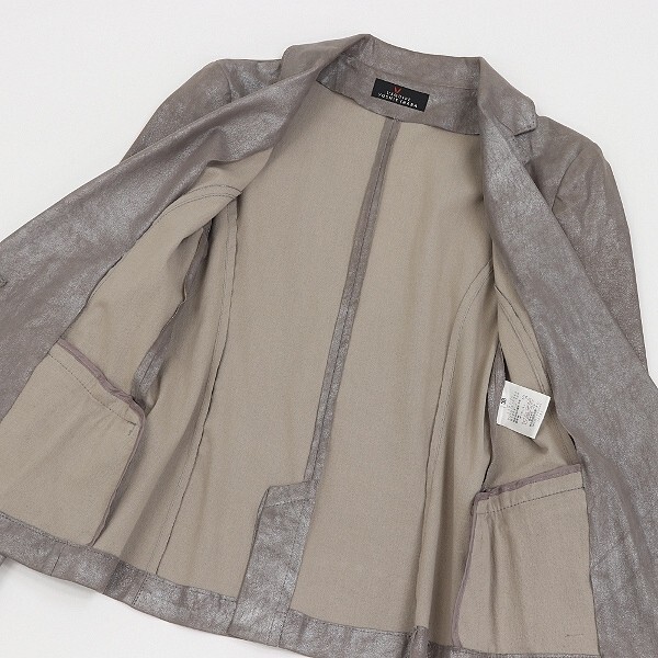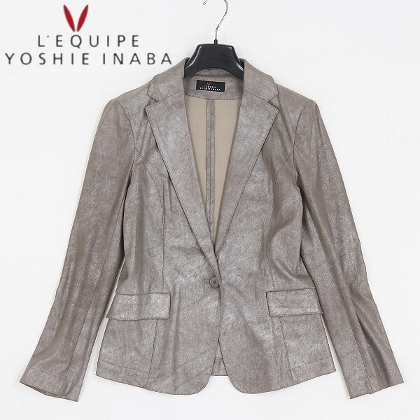 【HA355】美品◆L'EQUIPE YOSHIE INABA レキップ ヨシエイナバ 光沢感 羊革 ラムレザー 1釦 ジャケット グレージュ 38 | |