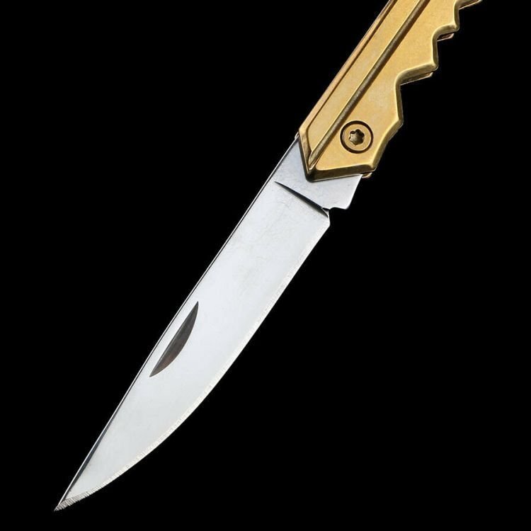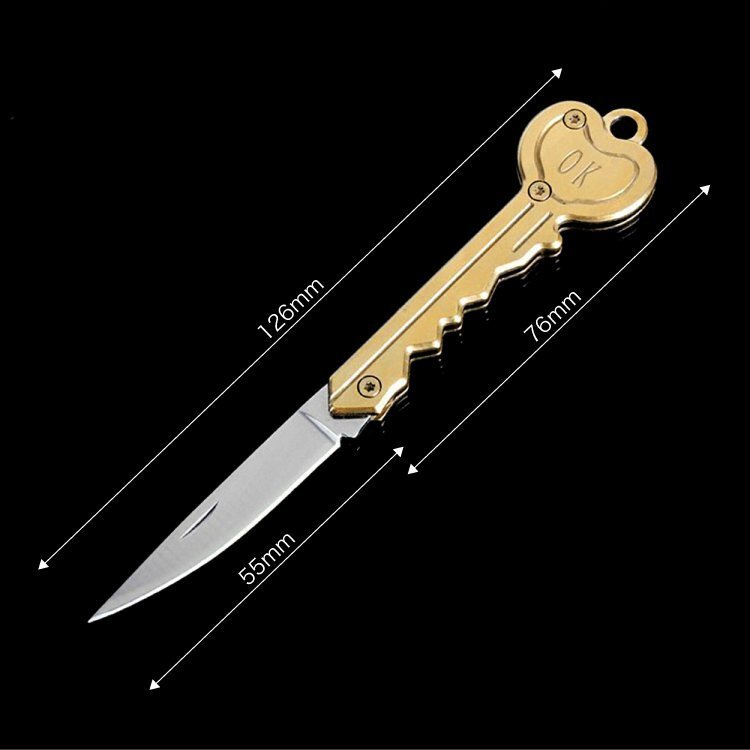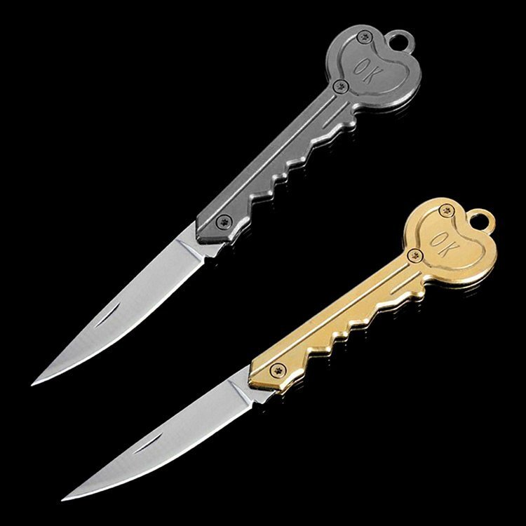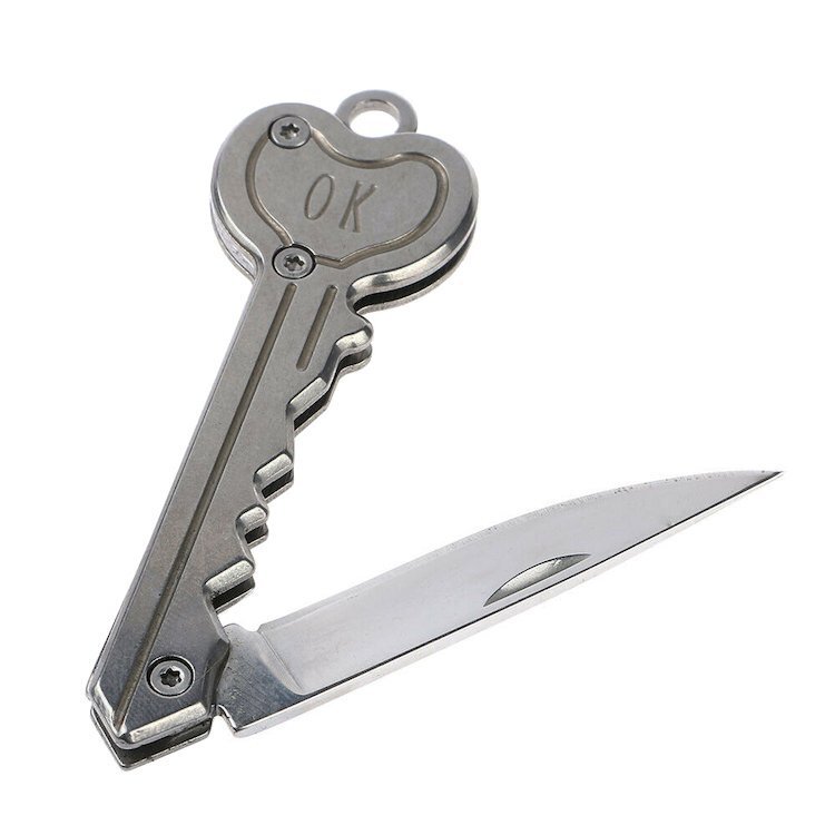 車のキーやストラップなどに取り付けて手軽に携帯できる、ミニサイズのキー型折畳みナイフです。