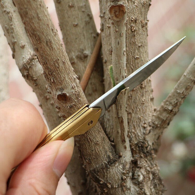 小型ながらも切れ味の良い実用硬度55HRCのステンレス刃を備えた、本格的な造りです。