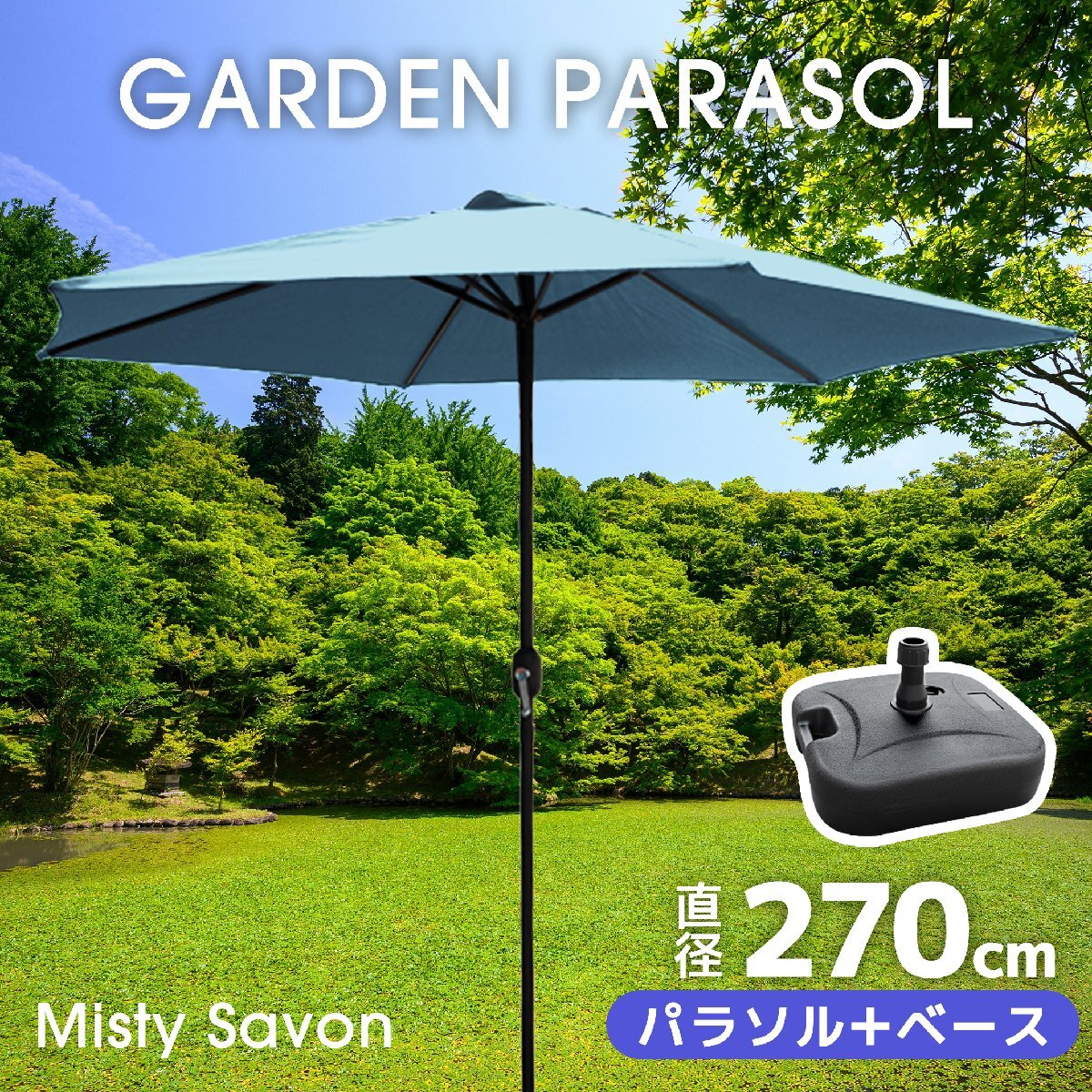 日差しから守るガーデンパラソルです。 バーベキューにピクニックにビアガーデンと晴れた日には欠かせないアイテム! ハンドル式で開閉が簡単! ハンドルをくるくる回るだけなので、女性でも簡単に傘を開くことができます。 パラソルの支柱は2つに分かれるので、持ち運びもラクラク! 水や汚れに強い撥水加工! 雨に濡れても水を弾くので、雨漏れする心配はありません!お手入れもサッと拭くだけで簡単! ※完全防水ではありません。 中に水を入れて使用するパラソルベーススタンド。 ガーデンやベランダでのパラソルの使用でオススメ! 使用後は中の水を抜けば軽くなるので持ち運びにも便利です。 本体は取っ手付きなので持ち運びがラクラク! ポール受けキャップは本体に収納できます。 パラソルスタンド以外にも、のぼり等のスタンドに最適! 【商品仕様】 カラー:ブミスティサボン オープン時サイズ(約):幅2700×奥行2700×高さ2370mm 支柱径(約)直径40mm 重量(約):4.5kg 材質:ポリエステル、アルミ ●ベース(土台) サイズ(約):幅450×奥行450×高さ270cm 重量(約):1.5kg 水を入れた時の重量(約):21.5kg 対応パラソル(約):直径40mm対応 カラー:ブラック 材質:ポリエチレン他 【注意事項】 ・お客様による組み立て商品です。 ・強風時は破損、転倒などの危険がありますので、ご使用はおやめください。 ・傘生地には撥水加工をしておりますが、完全防水ではありません。 ・同梱されている説明書に一部誤りがございます。パラソル固定用のネジが2個と記載されていますが1個の誤りです。予めご了承ください。 |