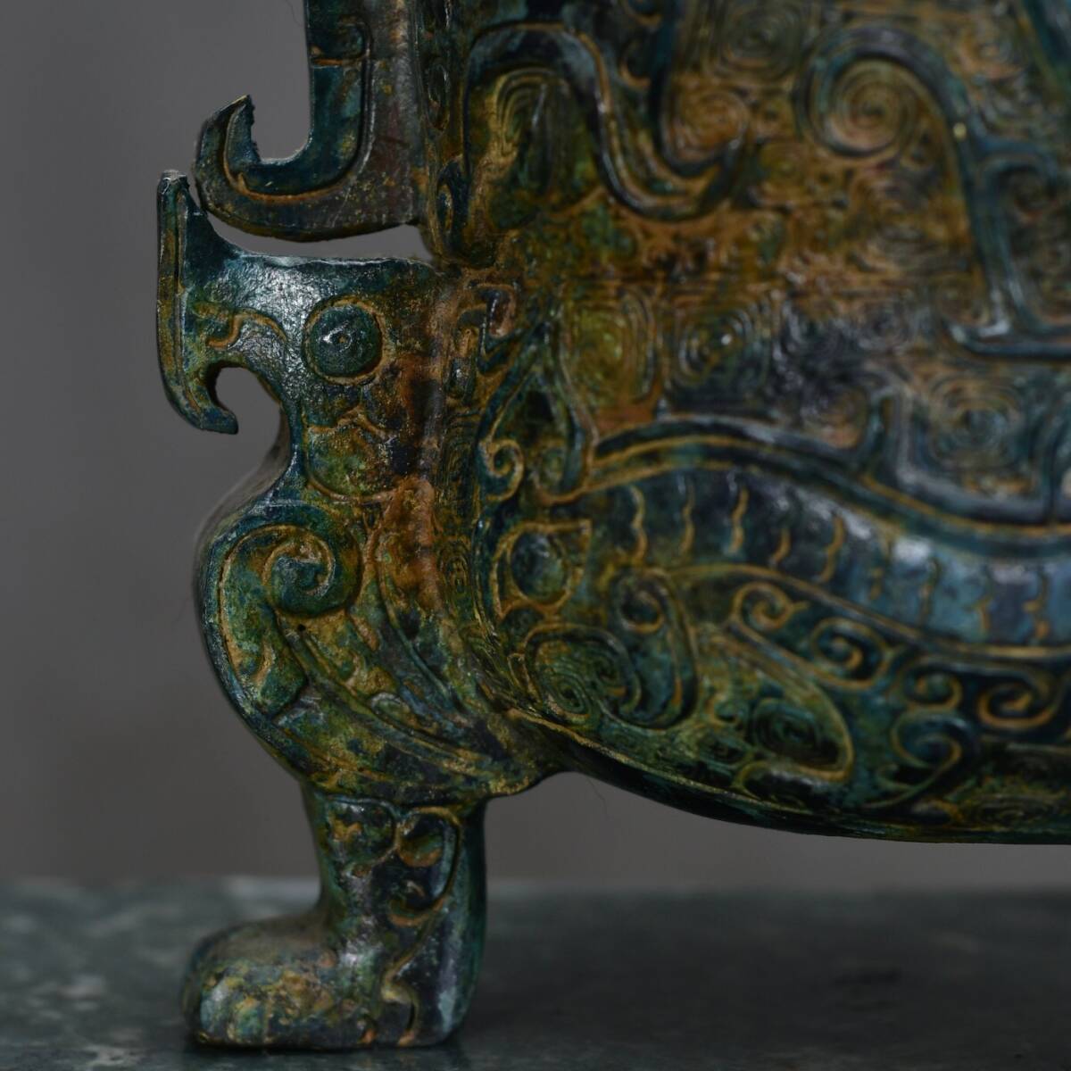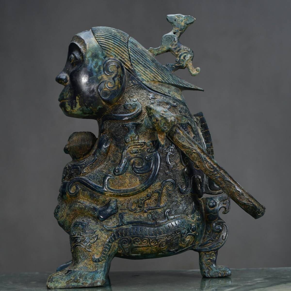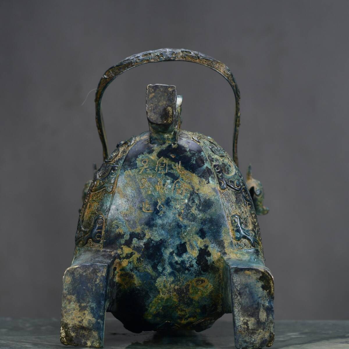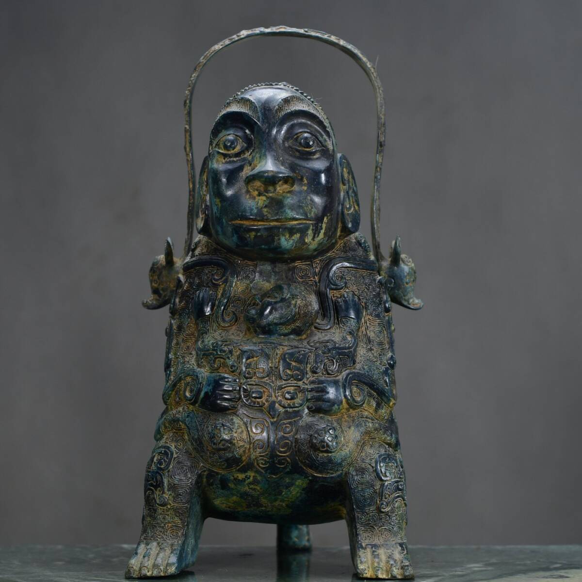 【超珍館蔵】西周 青銅製 人面提梁 青銅器 置物 賞物 古賞物 古董品 古美術品 時代物 旧家蔵出 稀少珍蔵品