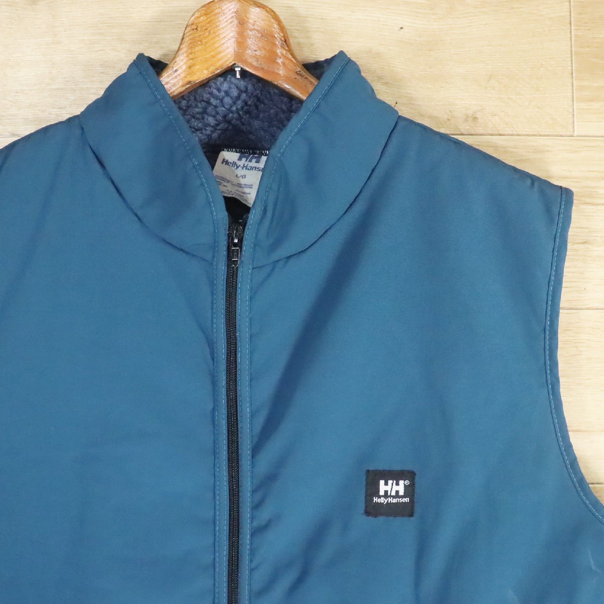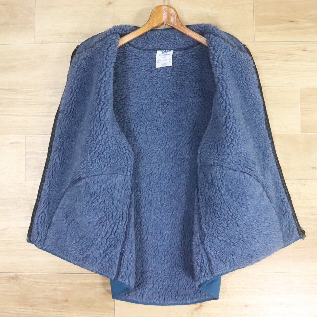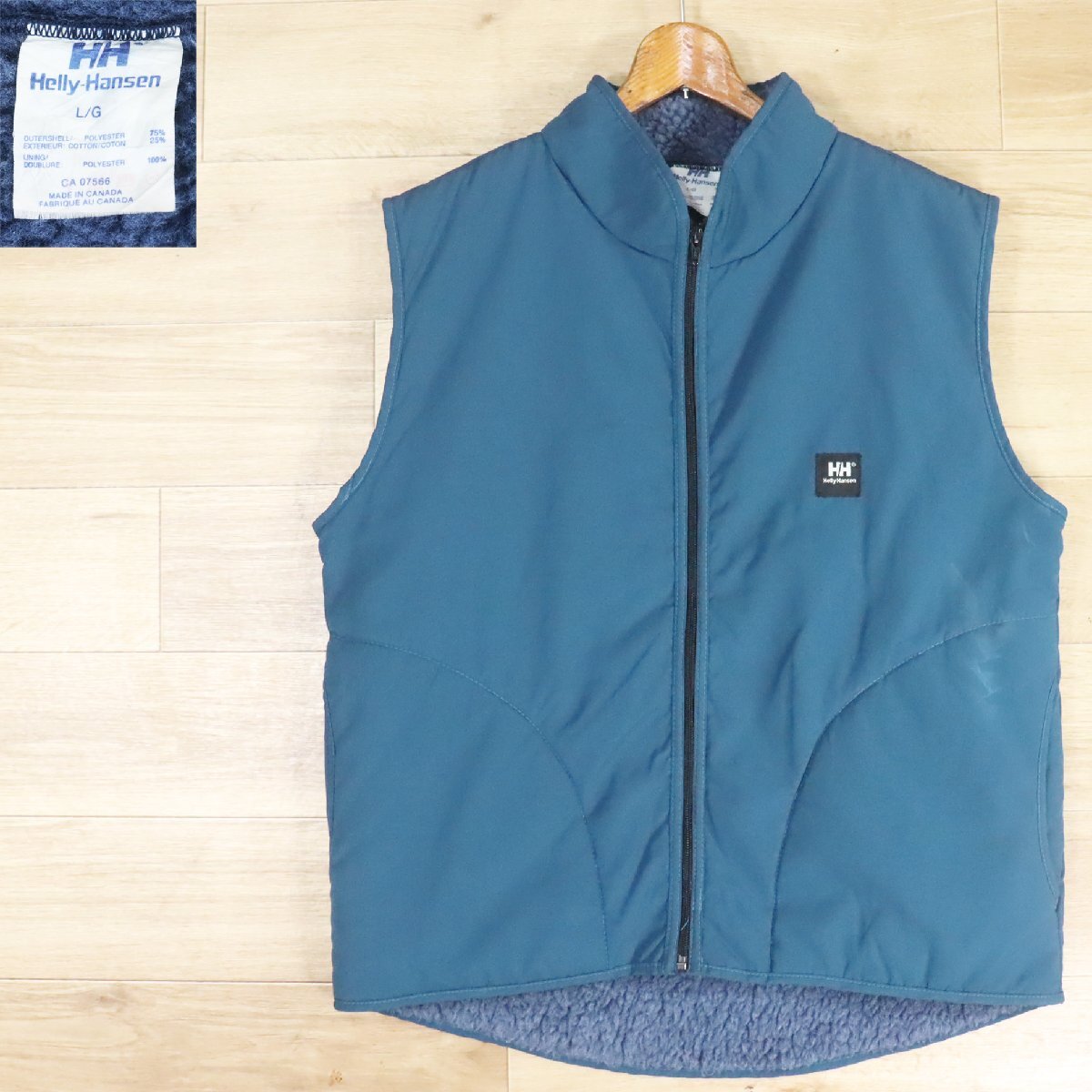 F5S/Y8.22-3 カナダ製 HELLY HANSEN ヘリーハンセン フルジップ 裏ボア ベスト メンズ L アウトドア スポーツ ブルー系 古着