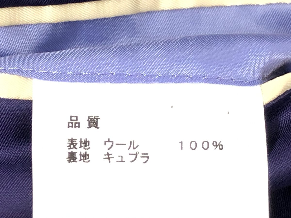 ・ジャケット・・・着丈(襟下から背中心で)約74センチ、身幅約51センチ、肩幅(直線で)約45センチ、袖丈約61センチ、ウエスト幅(第1ボタン付近で)約47センチ