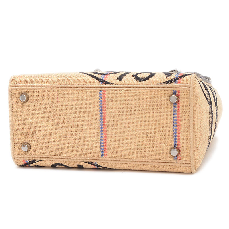 | 商品特徴 | その名の通り、軽量なヘンプ素材とアイコニックなカナージュステッチが特徴的なハンドバッグです。ナチュラルなベージュカラーが上品で、フロントに配された「Christian Dior」のシグネチャーが目を引きます。取り外し可能なショルダーストラップ付きで、手持ちとしてもクロスボディとしても楽しめる、リゾートシックな魅力とエレガンスを兼ね備えた逸品です。 |