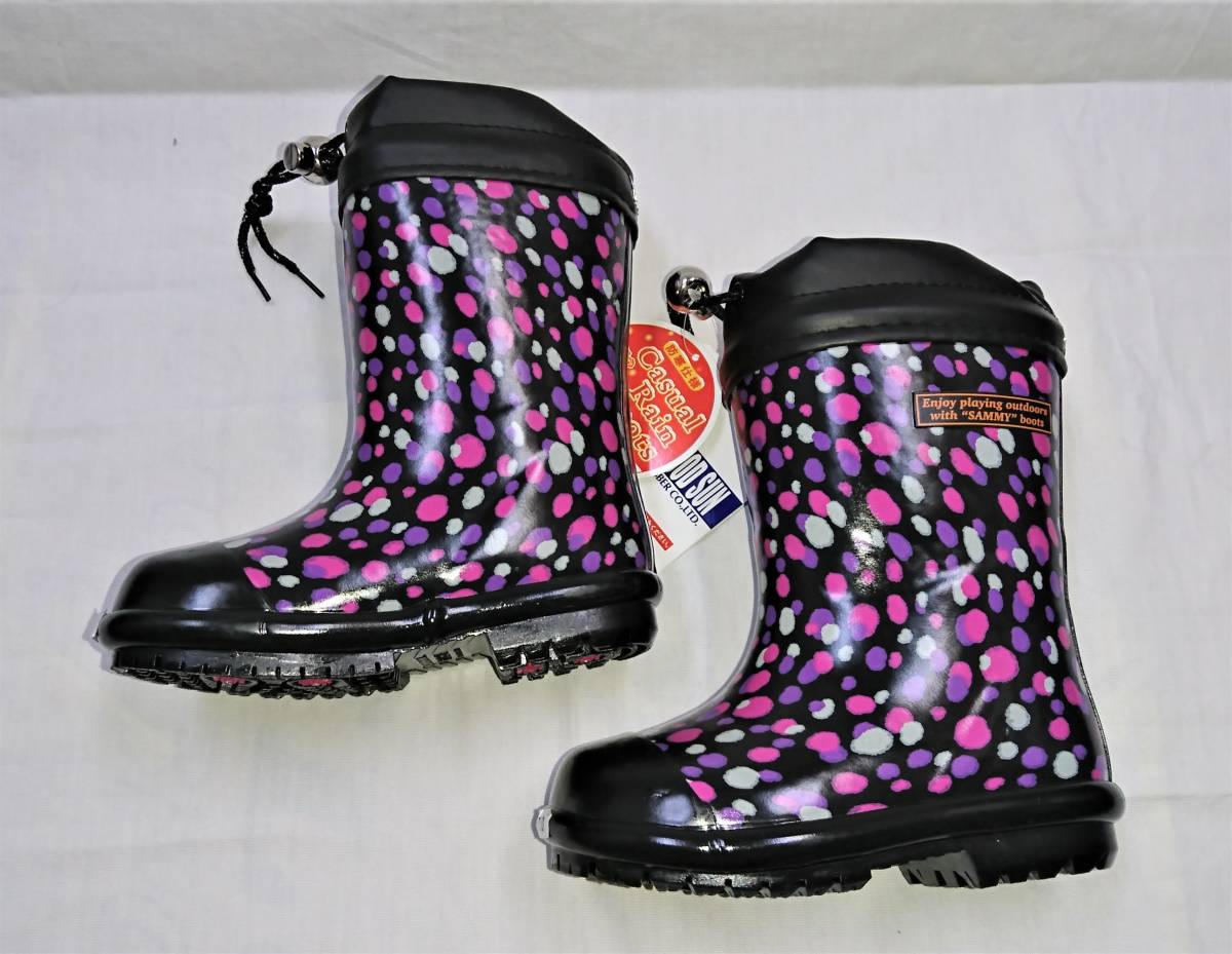少女 長靴 サミー 6831 15センチ 女の子 レインブーツ 黒/ピンク  メーカー 弘進ゴム